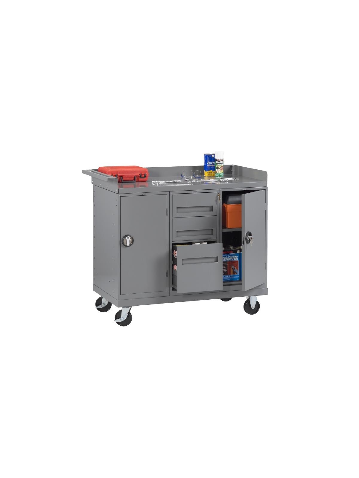 Description Mobile Workbench with 2 Door Cabinets and 3 Drawers