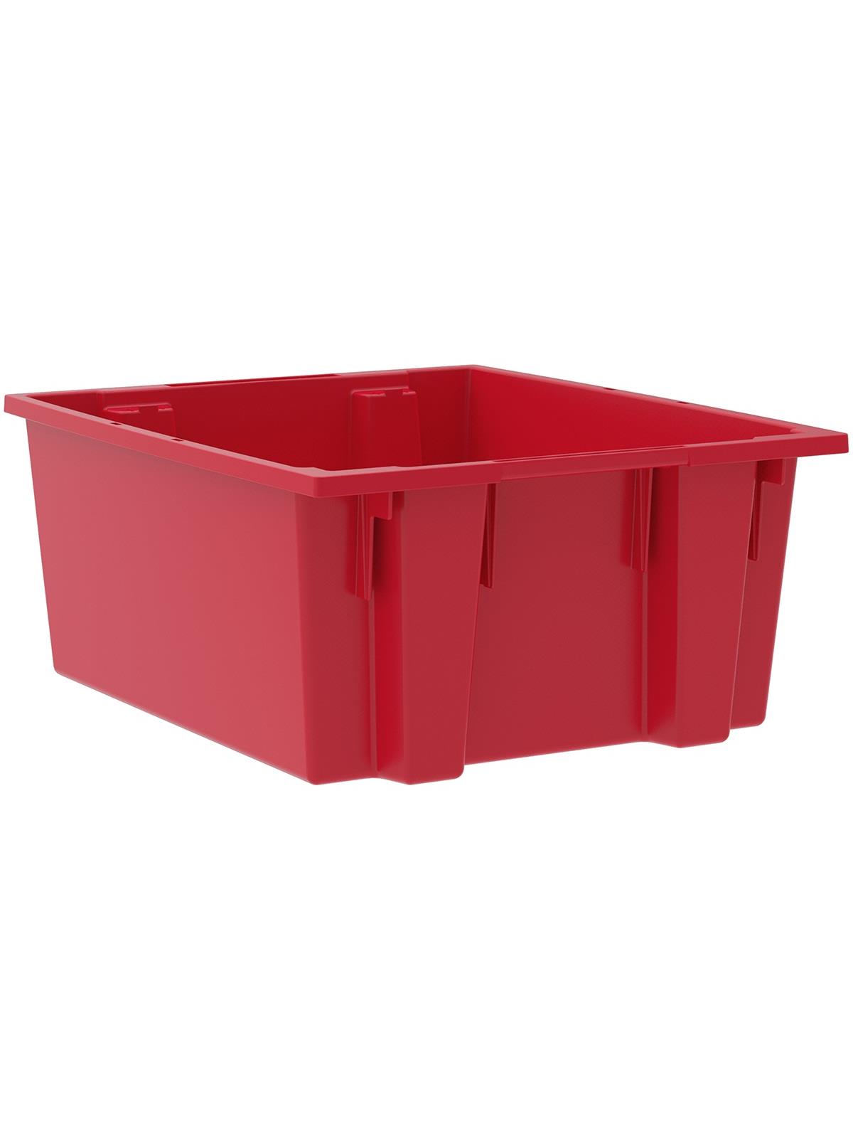 Heavy-duty construction provides a superior service life resulting in lower replacement costs than “budget-priced” totes. Smooth surfaces are easy to clean and are resistant to most solvents and chemicals. Available optional lids protect contents from dust and damage. Stackable with or without lids for shipping. When empty and without lids, totes nest for space saving storage. Available in Red, Blue, or Gray. Gray totes manufactured from FDA-approved materials. FOB Shipping Point.