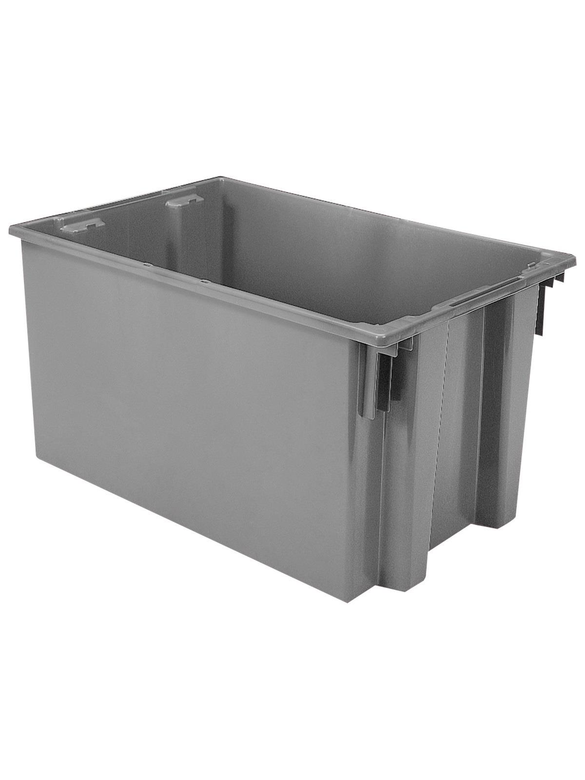 Heavy-duty construction provides a superior service life resulting in lower replacement costs than “budget-priced” totes. Smooth surfaces are easy to clean and are resistant to most solvents and chemicals. Available optional lids protect contents from dust and damage. Stackable with or without lids for shipping. When empty and without lids, totes nest for space saving storage. Available in Red, Blue, or Gray. Gray totes manufactured from FDA-approved materials. FOB Shipping Point.