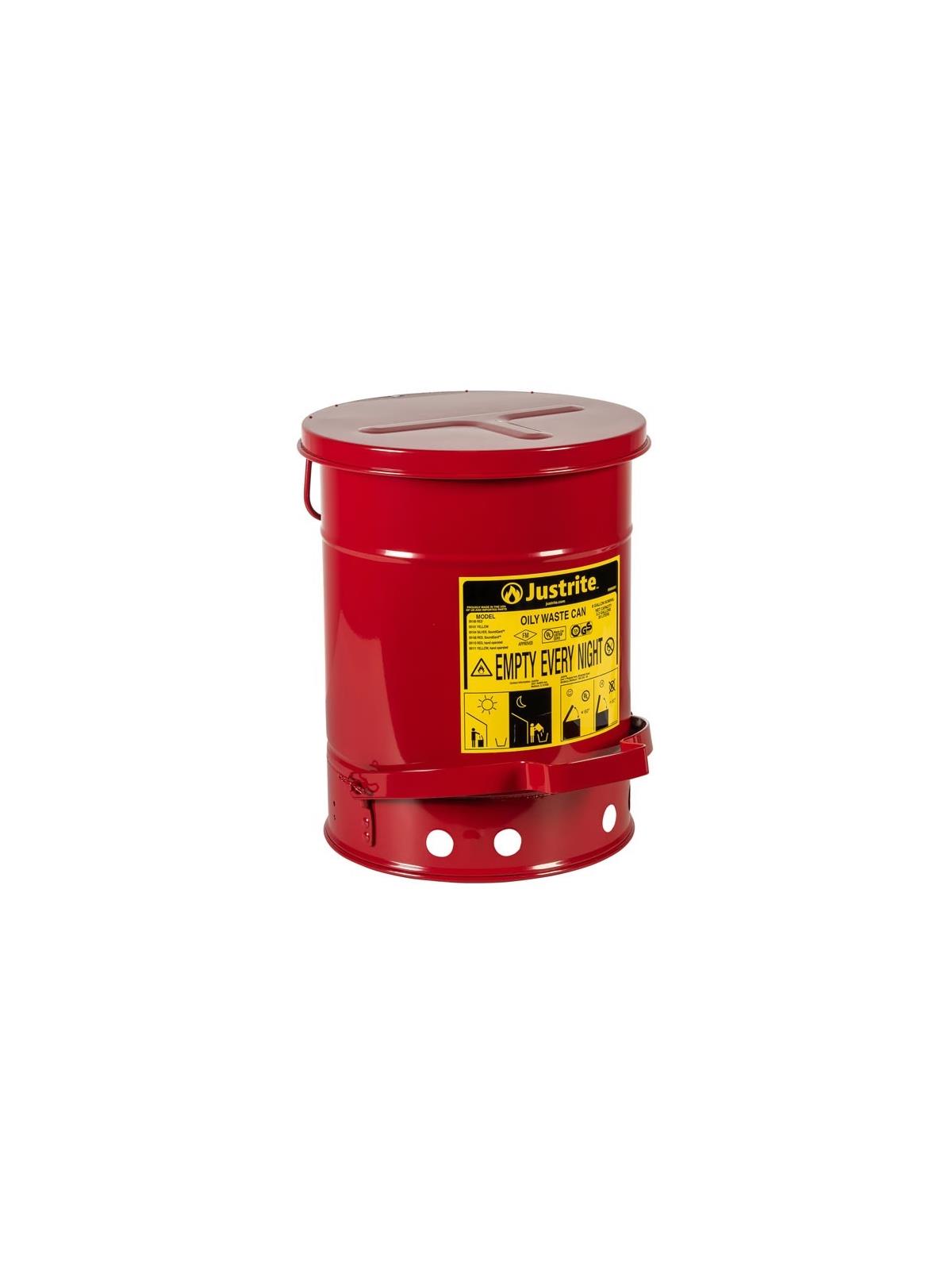 Oily Waste Cans are essential wherever solvent soaked rags and wipes are used. Durable galvanized steel body with carrying handle has a self-closing cover that stays closed when not in use to isolate contents from fire sources and limits oxygen to prevent spontaneous combustion. Raised, flow-through base encourages circulation of air to disperse heat and moisture. Silver color features SoundGard quiet-closing lid to lessen disruptive noise and provide a more comfortable working environment. OSHA compliant, FM approved. UL Listed (except for 2 gallon.) FOB Shipping Point.