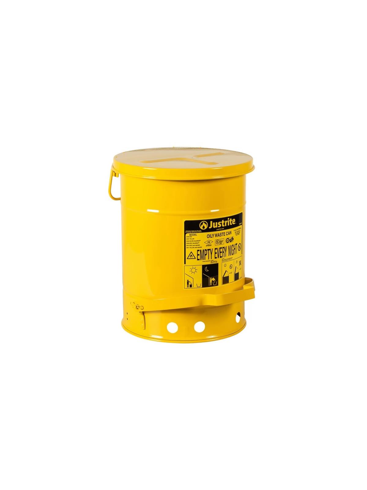 Oily Waste Cans are essential wherever solvent soaked rags and wipes are used. Durable galvanized steel body with carrying handle has a self-closing cover that stays closed when not in use to isolate contents from fire sources and limits oxygen to prevent spontaneous combustion. Raised, flow-through base encourages circulation of air to disperse heat and moisture. Silver color features SoundGard quiet-closing lid to lessen disruptive noise and provide a more comfortable working environment. OSHA compliant, FM approved. UL Listed (except for 2 gallon.) FOB Shipping Point.