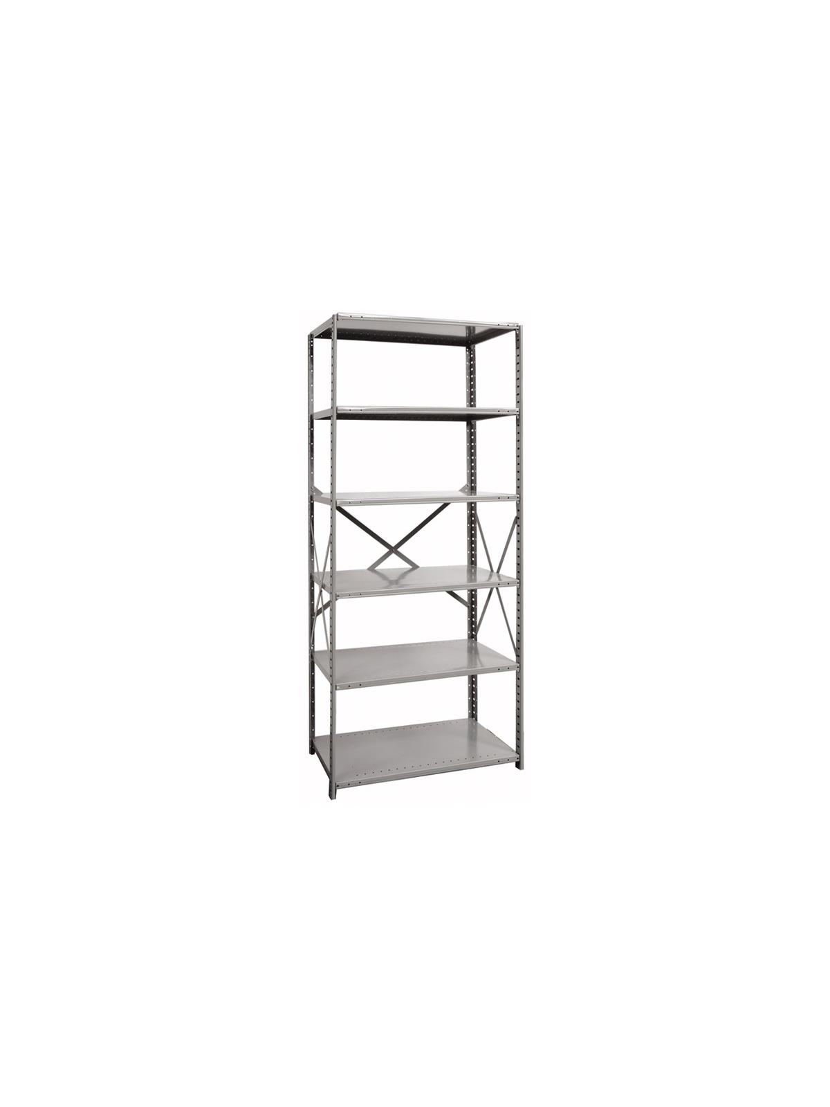 Shelves are box formed at front and back allowing high capacity storage with minimal deflection. Sides of shelves are triple flanged adding to shelf strength. Compression shelf clips improve overall unit capacity. Posts are punched to allow shelves to be adjusted top to bottom at 1-1/2” on center. Beaded front posts allow use of full shelf width and are common between adjoining units reducing assembly and installation time as well as reducing cost. Angle back posts can be bolted together when joining units side-by-side or back-to-back. Side and back sway braces eliminate units sway providing a safe storage solution. Color: Dark Gray (HG). FOB Shipping Point.