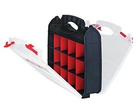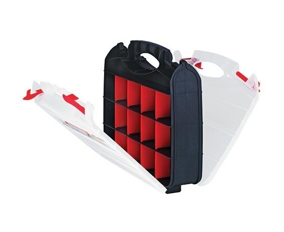 Clear lid design allows quick identification of parts inside. Unique latch enables lid to close and latch tight and secure. Dividers prevent parts from migrating between various compartments. Base and lid manufactured from industrial grade polypropylene. Dividers included allow you to customize the size of the desired compartment inside. Sold in carton quantities only. FOB Shipping Point. **Minimum order one case.