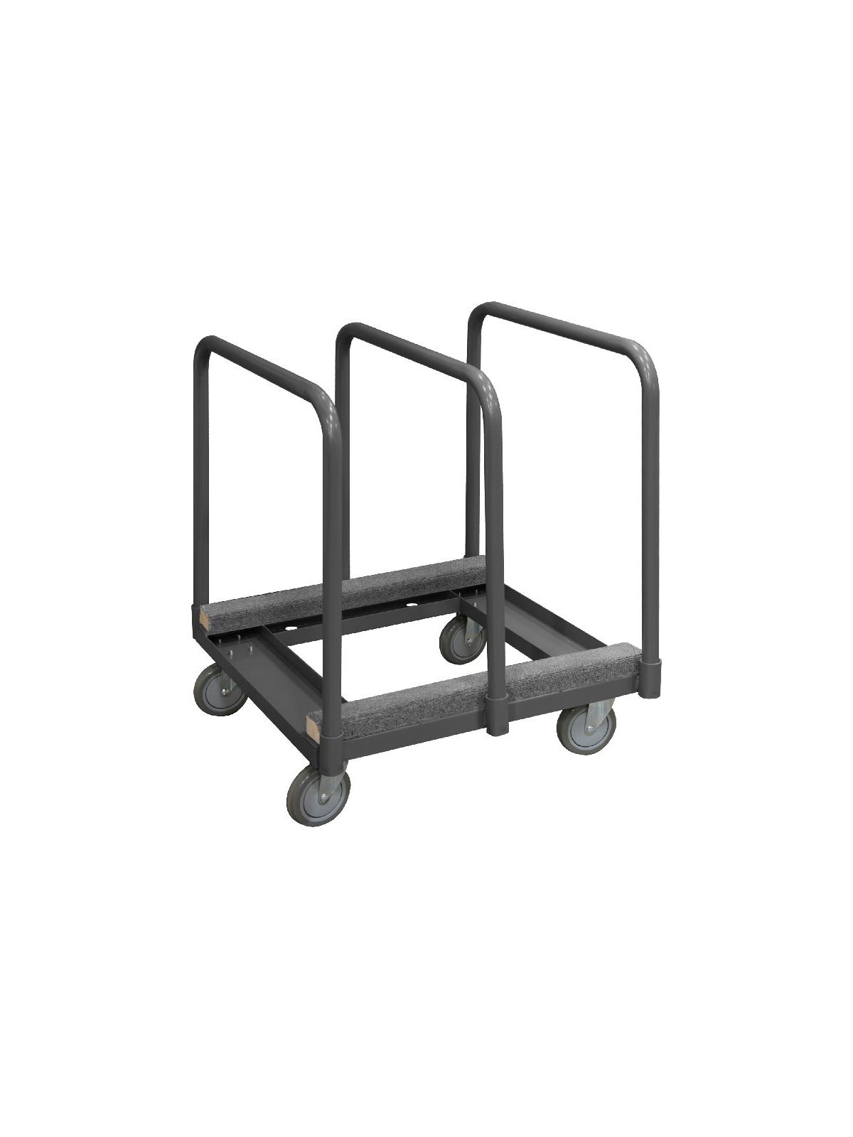 Heavy duty, 14 gauge, steel platform. Easy to access and pick up on-board product. Allows for the storage and transportation of various sizes of panels & products. Durable, gray, textured powder coat finish. FOB Shipping Point.