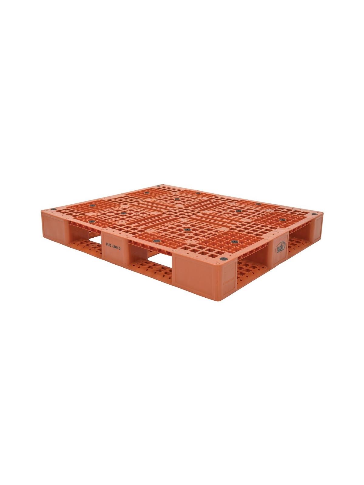 Made of high-density polyethylene for longer life. Pallets are maintenance free and safer to handle than wooden pallets. Features four-way entry. Serrated deck with holes for drainage. Plastic pallets are ideal for export, pharmaceutical, medical and food applications. FOB Shipping Point.