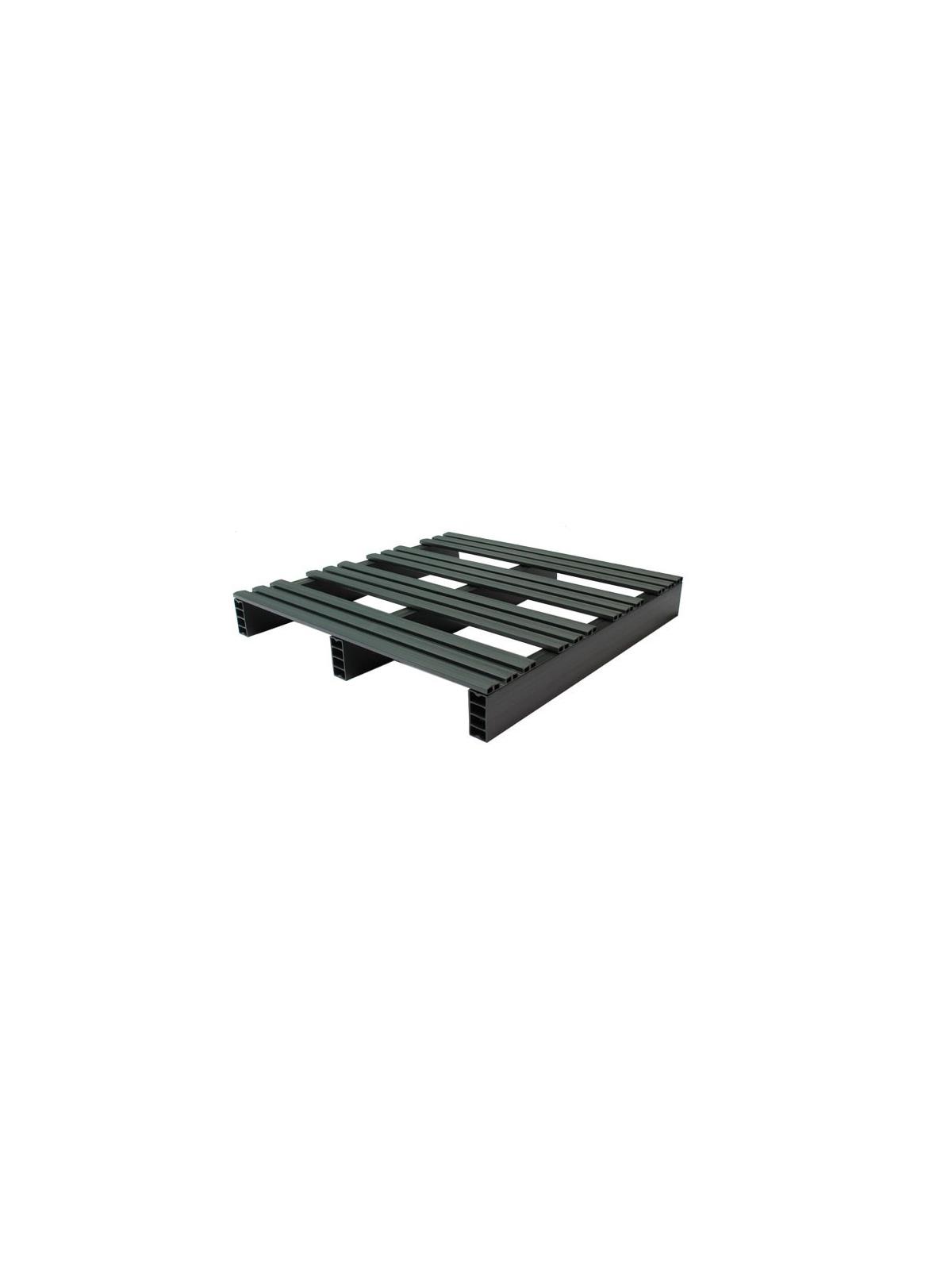 Pallets are made from recycled rigid PVC and will vary in color (shades of gray to black), weight and surface consistency.