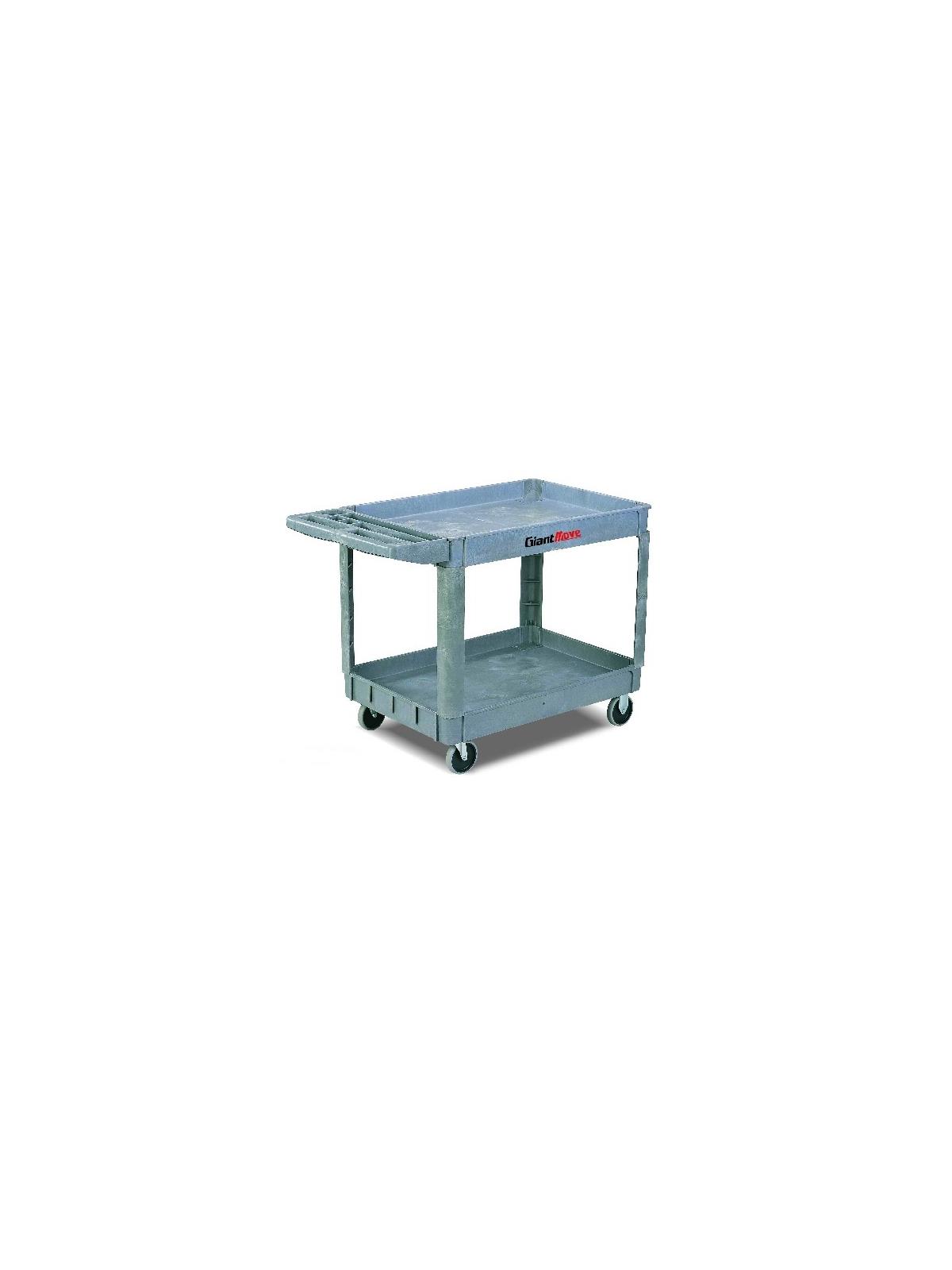Manufactured from Heavy Duty plastic. Round corners to prevent wall damage and has storage in the handle. Lip-Up carts are Gray in color. Lip-Down carts are Black. Both with 5" non-marking casters, 2 swivel, 2 rigid. 4" deep shelves. FOB Shipping Point.