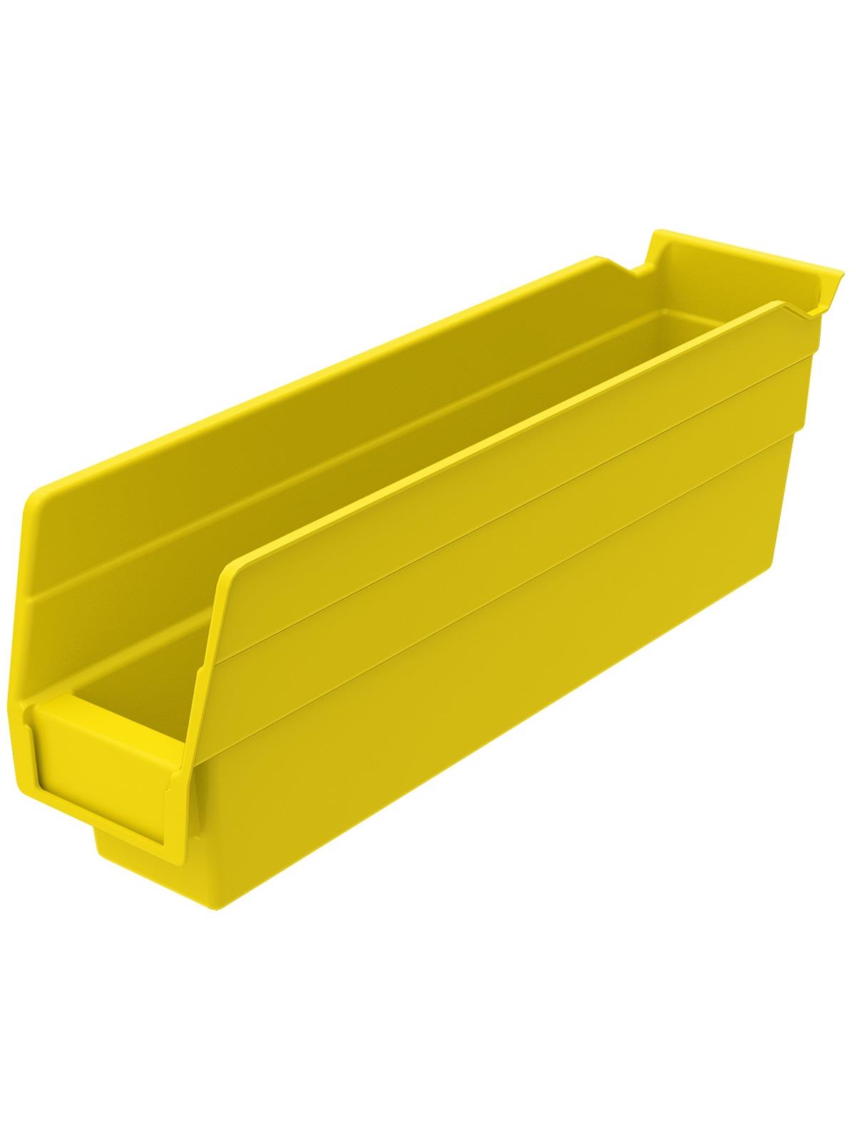 Outlasts corrugated bins - pays for themselves in reduced replacement costs. One-piece construction is waterproof and unaffected by grease or oil. Works with 12", 18" and 24" deep shelving, or vertical storage and retrieval units. Labels available. Available in 22 sizes and five colors - Red, Yellow, Blue, Green, or Semi-Clear. FOB Shipping Point.