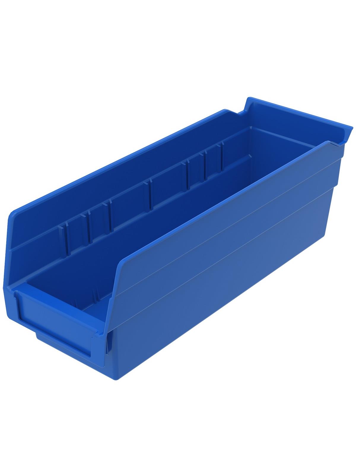 Outlasts corrugated bins - pays for themselves in reduced replacement costs. One-piece construction is waterproof and unaffected by grease or oil. Works with 12", 18" and 24" deep shelving, or vertical storage and retrieval units. Labels available. Available in 22 sizes and five colors - Red, Yellow, Blue, Green, or Semi-Clear. FOB Shipping Point.