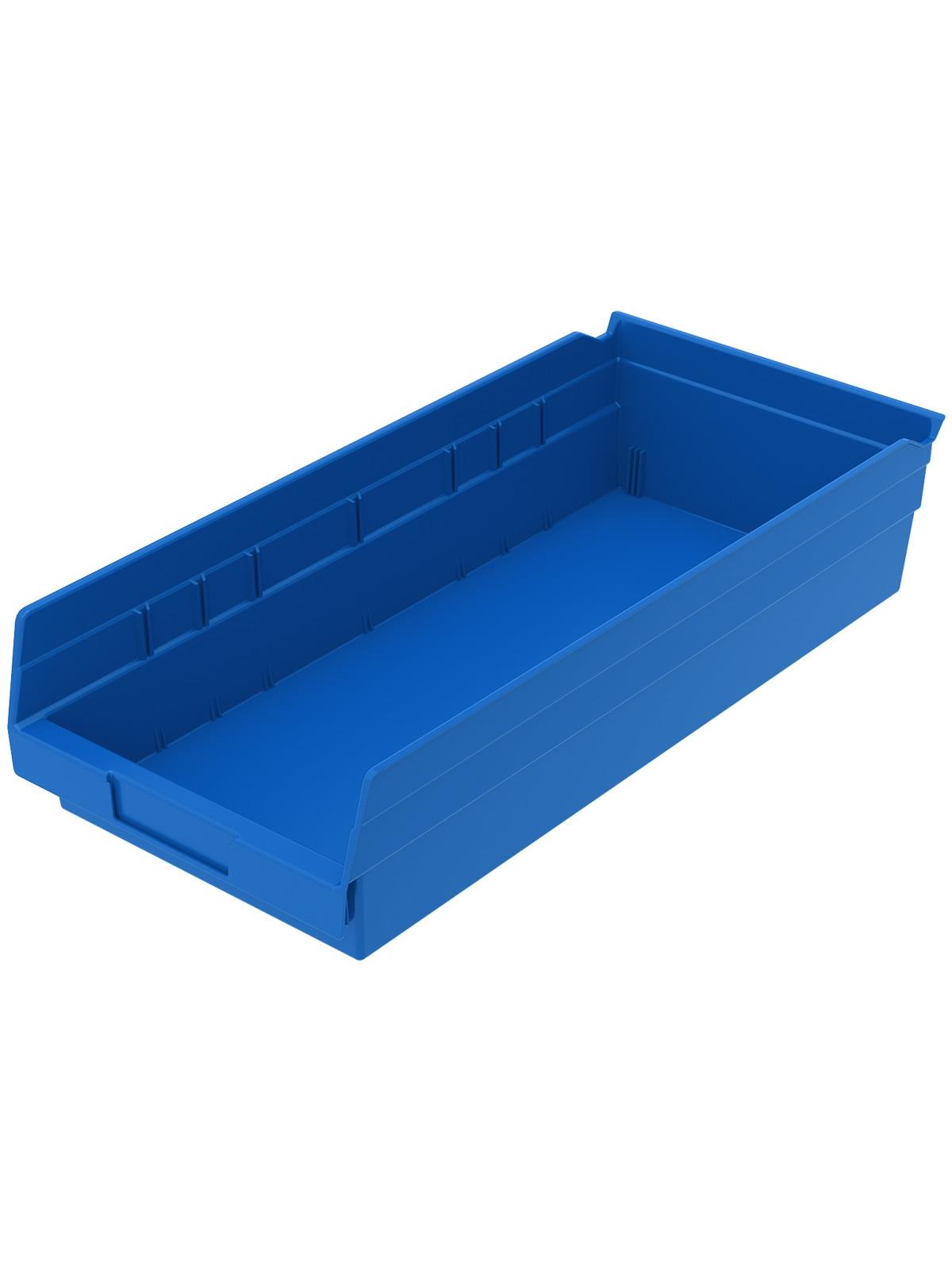 Outlasts corrugated bins - pays for themselves in reduced replacement costs. One-piece construction is waterproof and unaffected by grease or oil. Works with 12", 18" and 24" deep shelving, or vertical storage and retrieval units. Labels available. Available in 22 sizes and five colors - Red, Yellow, Blue, Green, or Semi-Clear. FOB Shipping Point.