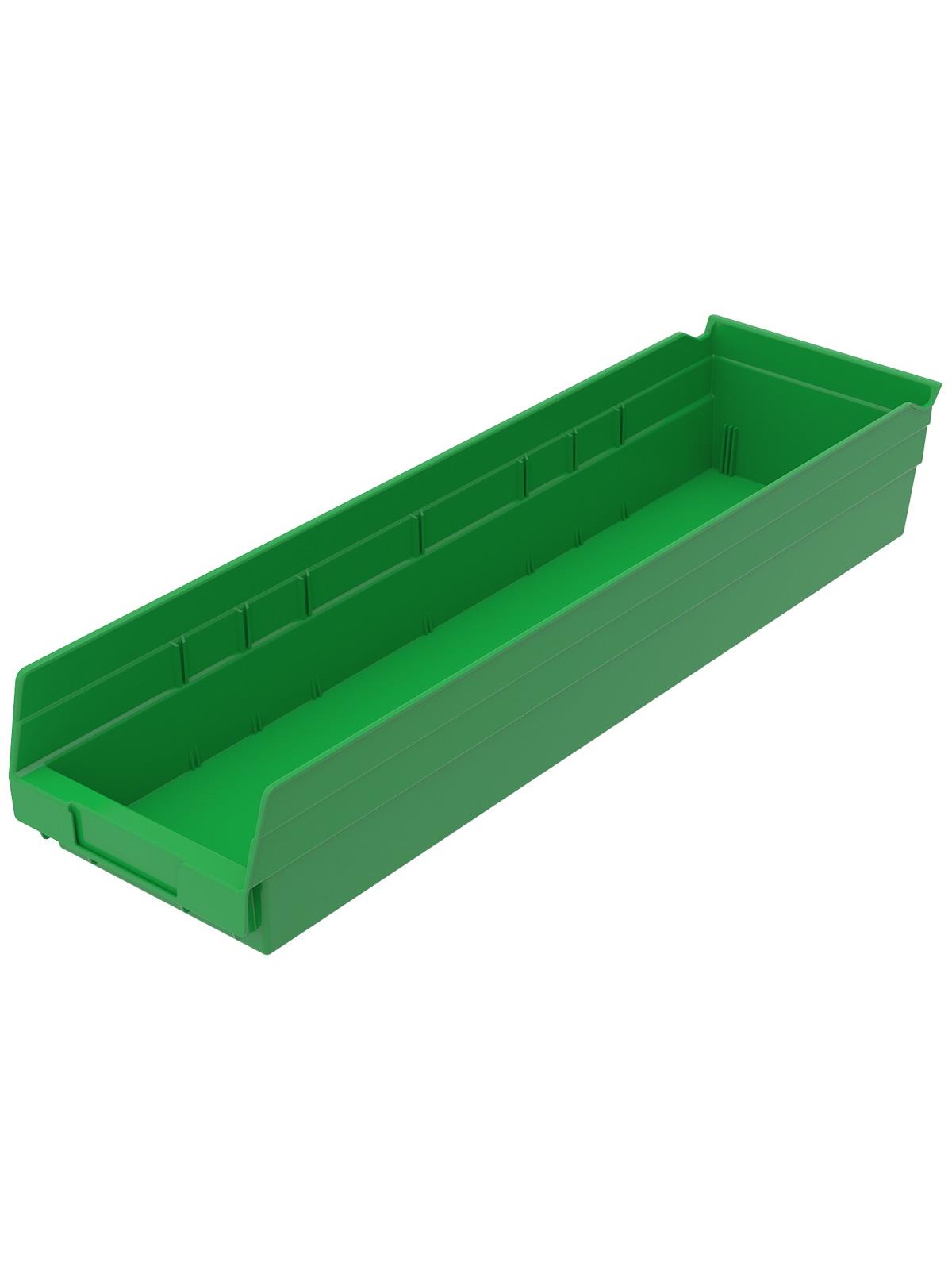 Outlasts corrugated bins - pays for themselves in reduced replacement costs. One-piece construction is waterproof and unaffected by grease or oil. Works with 12", 18" and 24" deep shelving, or vertical storage and retrieval units. Labels available. Available in 22 sizes and five colors - Red, Yellow, Blue, Green, or Semi-Clear. FOB Shipping Point.