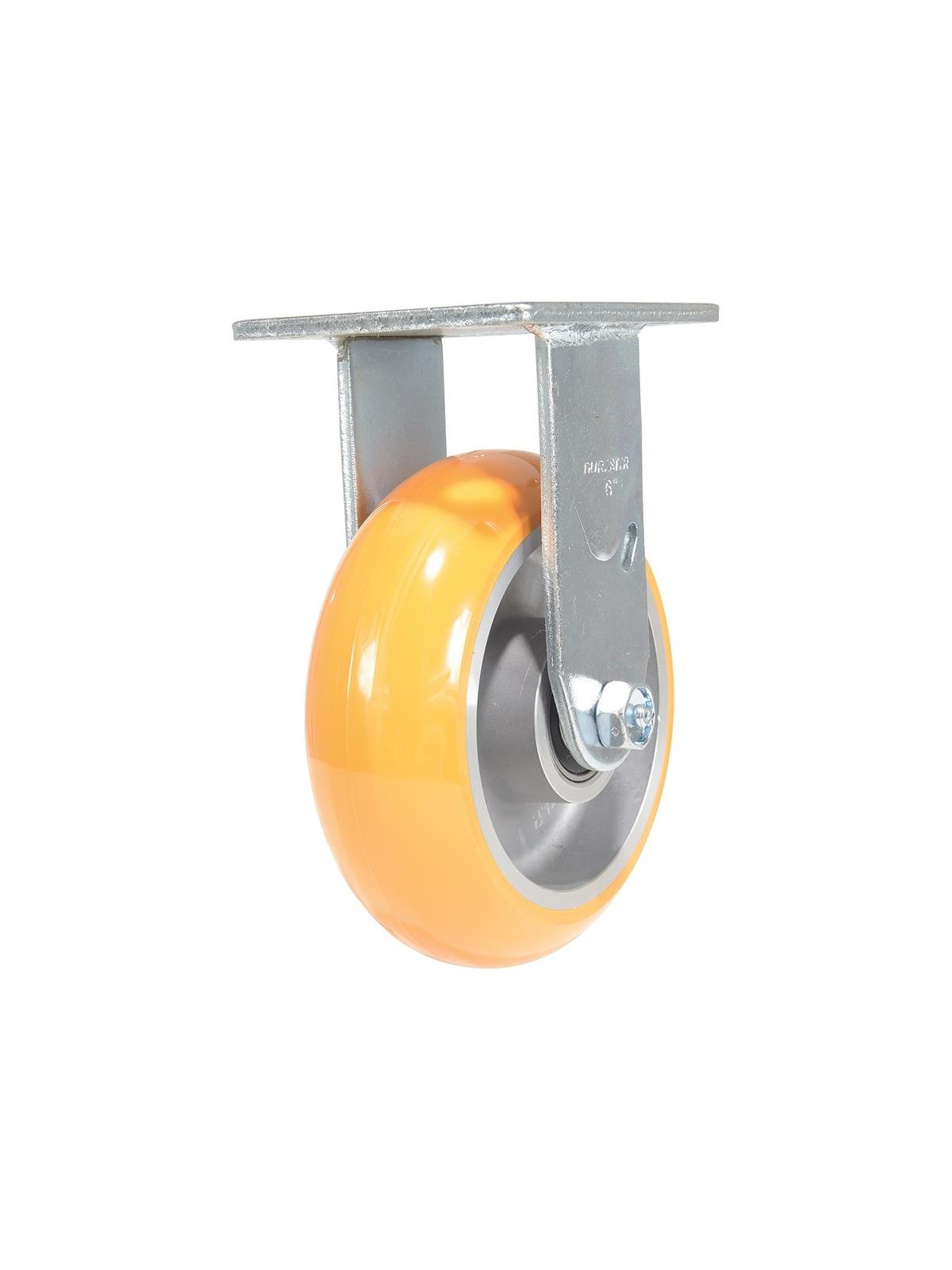 Made of exclusive proprietary donut tread. This caster comes with 6203 precision ball bearings and is bonded to a lightweight water-resistant aluminum core. The high grade elastic polyurethane reduces the force needed for movement and dampens vibrations for a smooth quiet roll. It also deflects debris, which strengthens its longevity and durability. Top plate size 4" x 4-1/2". FOB Shipping Point.