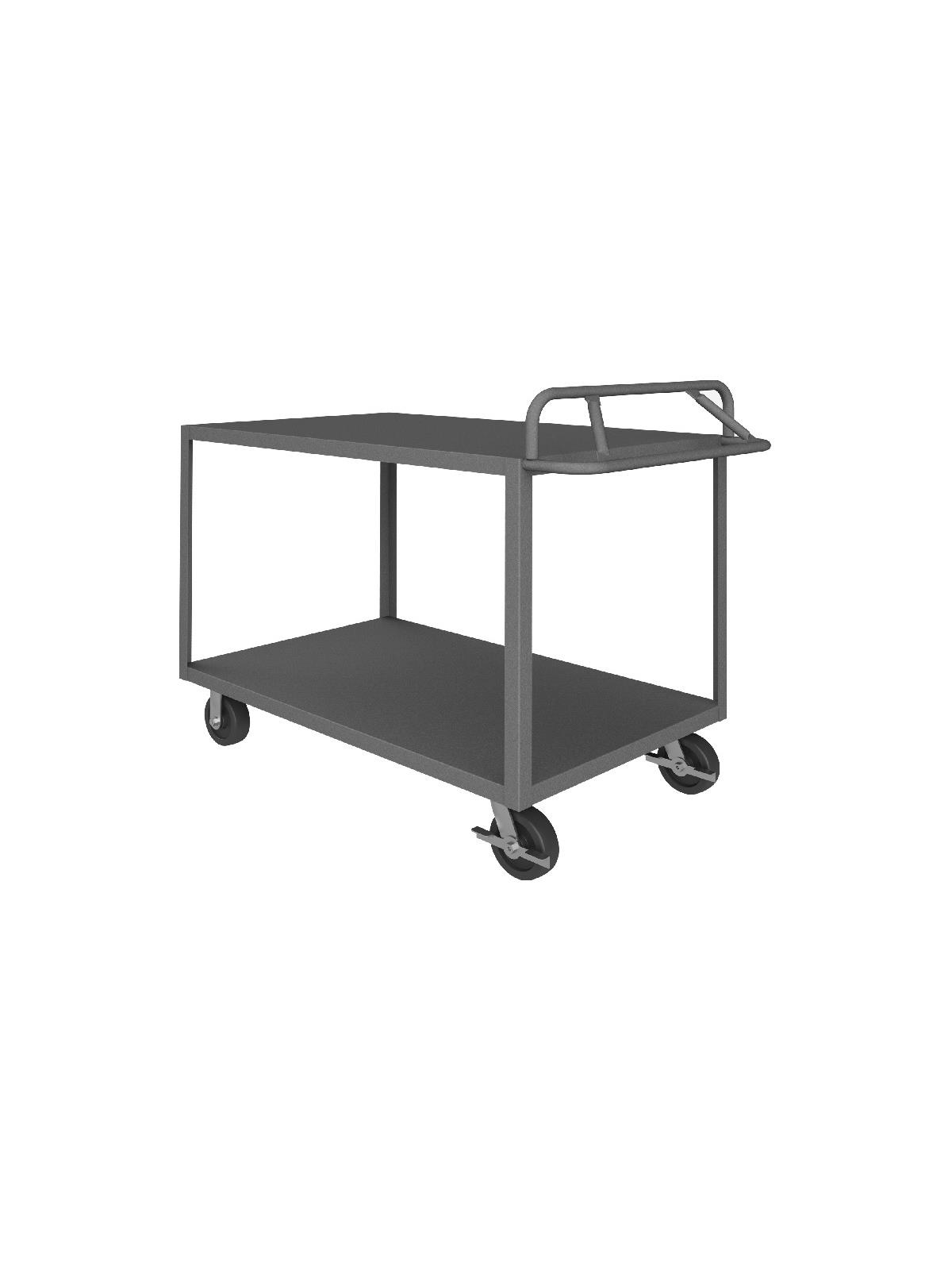 Constructed with 1-1/2" x 1/8" angle iron uprights for added strength. Heavy duty 14 gauge steel shelves. Sturdy, tubular, ergonomic handle has 3 positions ensuring maximum comfort. Standard units have 1-1/2" lips. ALD units have all lips down, TLD units have top lips down. Durable, gray, textured powder coat finish. FOB Shipping Point.