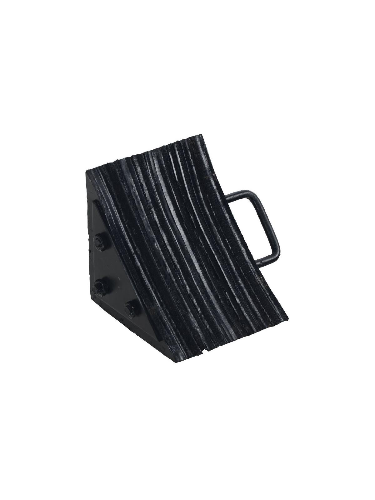 Constructed of reinforced rubber to provide a sure grip to virtually any surface. Curved surface contours to fit tires. Rubber resists tearing, abrasion, ozone weathering, etc. Functional design is durable in all weather conditions. Series HRWC-8 is constructed of a mix of virgin and recycled, no reinforcement cords. The Airline Chock is suitable for small and large aircraft. Model HAC-13 includes a 36" polypropylene rope between two chocks. FOB Shipping Point.