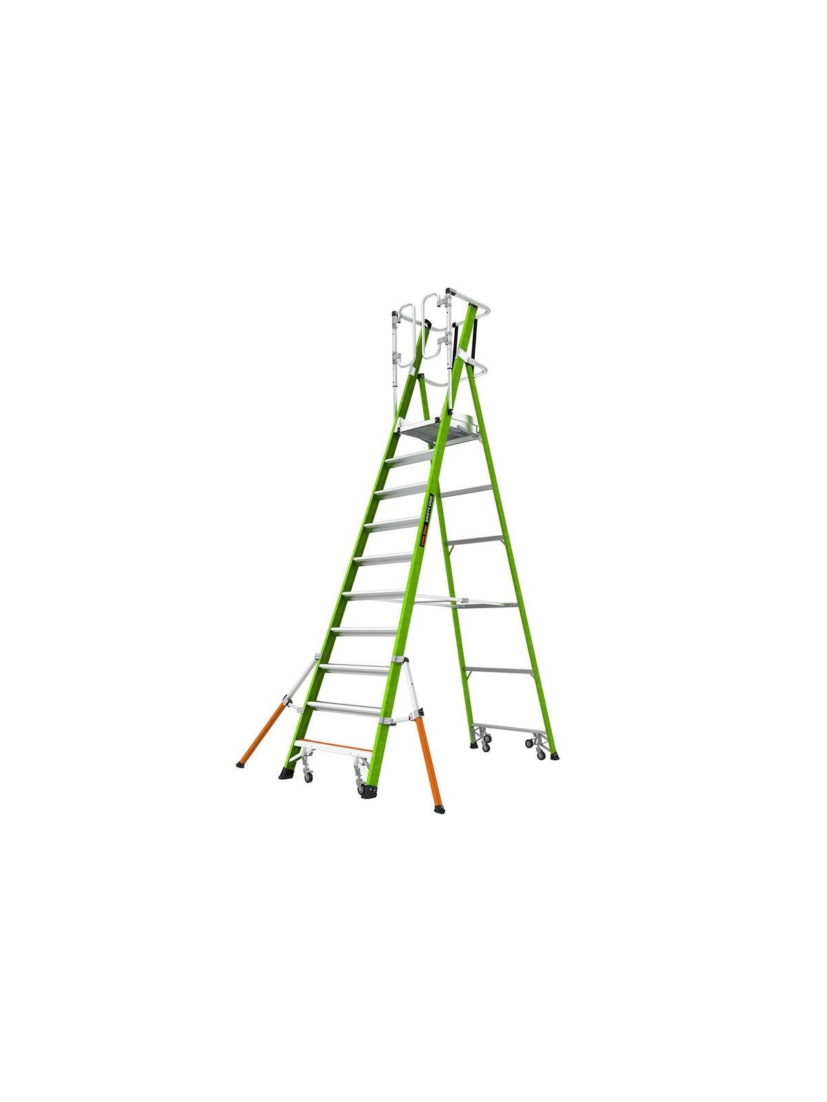 Constructed from a non-conductive fiberglass-resin composite, the Safety Cage folds compactly, making it easy to store. The Safety Cage can be set up with just one person. Descend the ladder with confidence knowing you will never miss the bottom rung again with the Ground Cue®. The Ground Cue alerts you with an audible "click" when you've reached the last rung on the ladder. The Safety Cage meets or exceeds all OSHA and ANSI standards and is rated IAA to hold 375 lbs. It is available in 4, 6, 8 and 10-foot sizes (platform heights of 2, 4, 6 and 8 feet respectively). FOB Shipping Point.