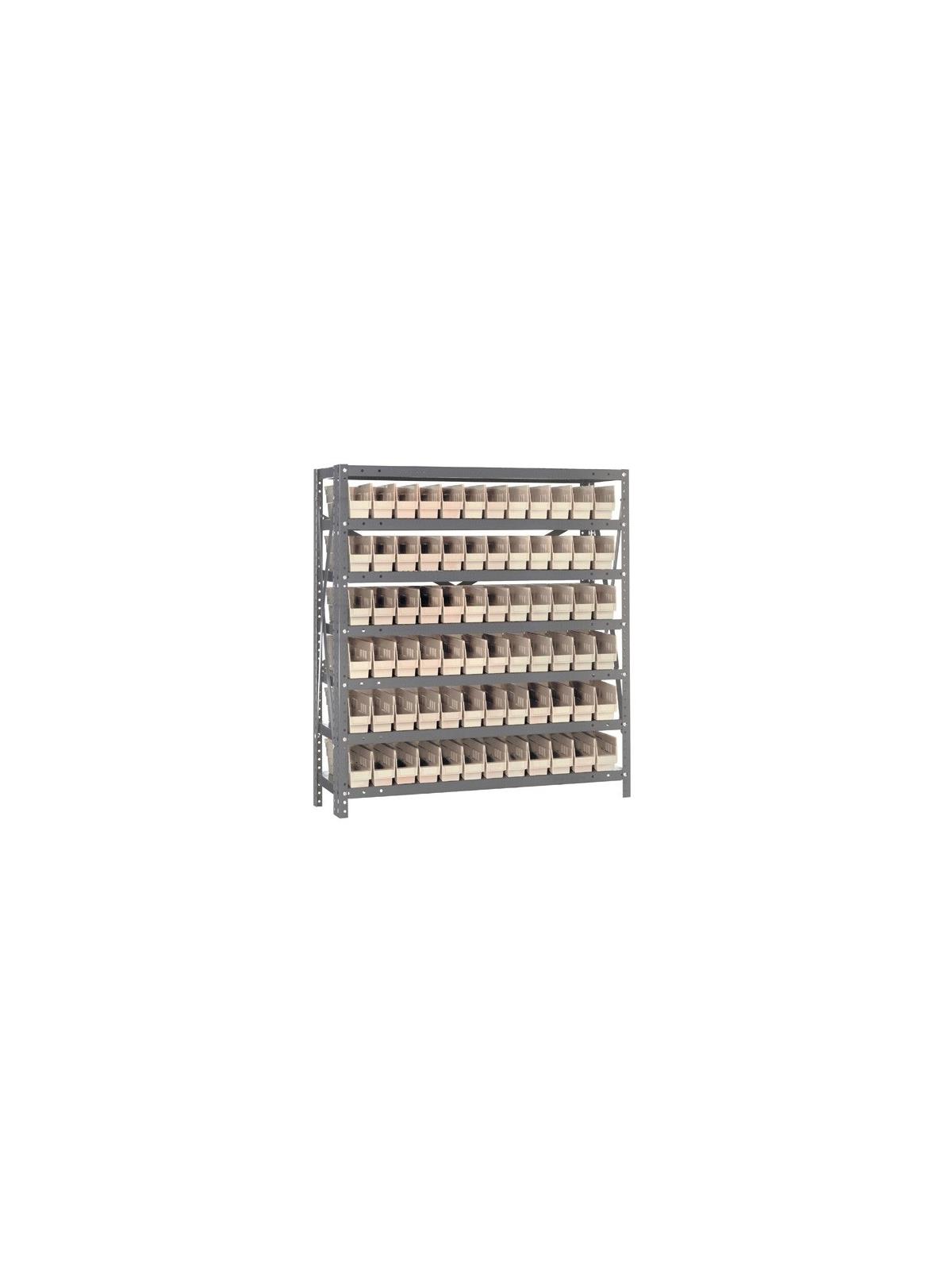 Rugged 350 lb. capacity per shelf, standard shelving unit will keep parts organized and readily accessible. Gray enamel finish will not rust or corrode. 12-HQSB100, 8-HQSB101, 5-HQSB102, 4-HQSB107, 3-HQSB109 fit across a standard 36"W x 12"D shelf. 8-HQSB103, 5-HQSB104, 4-HQSB108, 3-HQSB110 fit across a 36"W x 18"D shelf. Bins are available in Blue, Yellow, Red, Green, Ivory or Black. FOB Shipping Point.