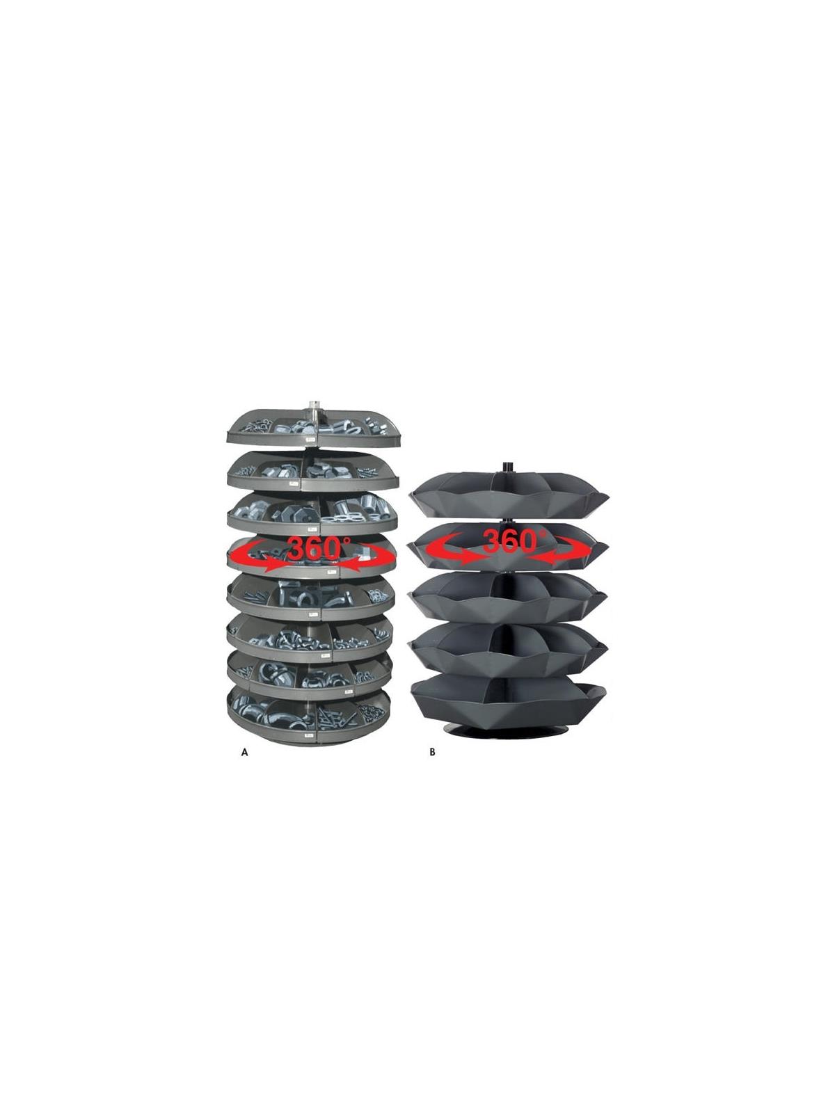 When space is at a premium, Rotabin® is the answer. Revolving shelves turn easily, independently...even when fully loaded. Made of heavy gauge steel for hard daily use. Available in Gray powder coat. FOB Shipping Point.