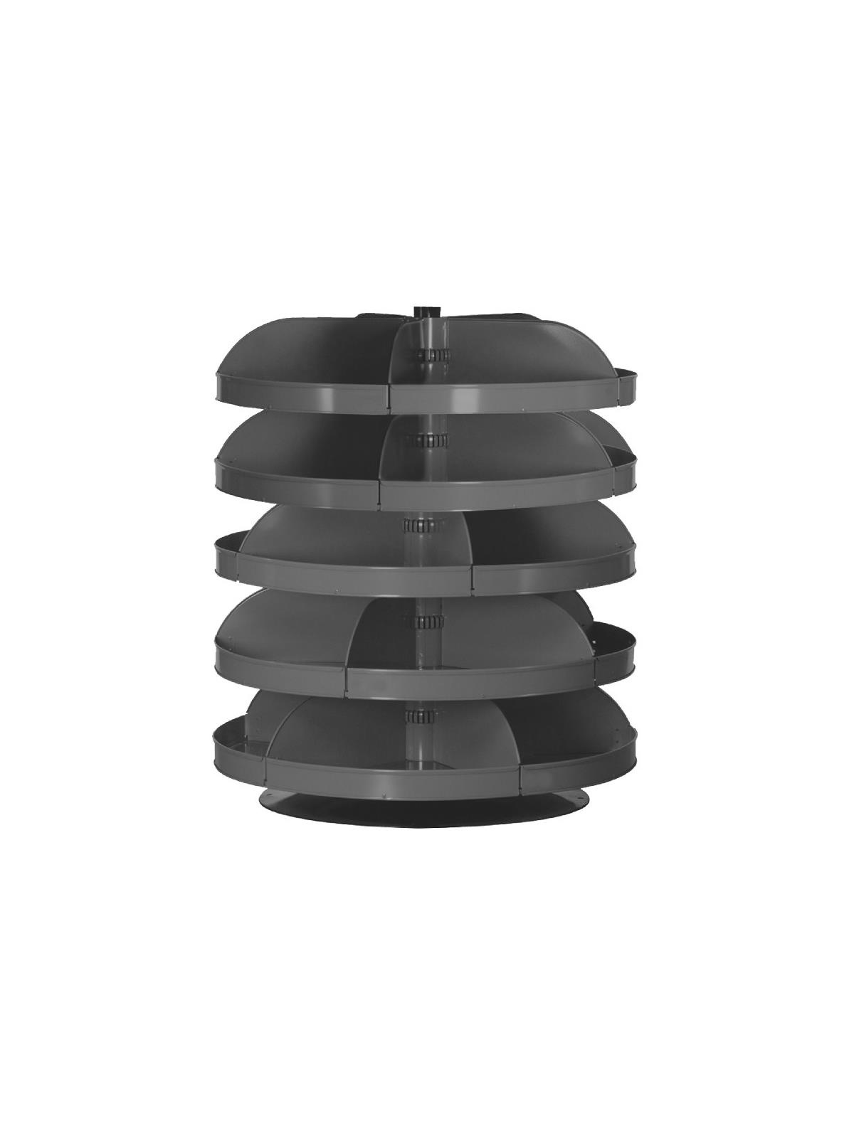 When space is at a premium, Rotabin® is the answer. Revolving shelves turn easily, independently...even when fully loaded. Made of heavy gauge steel for hard daily use. Available in Gray powder coat. FOB Shipping Point.