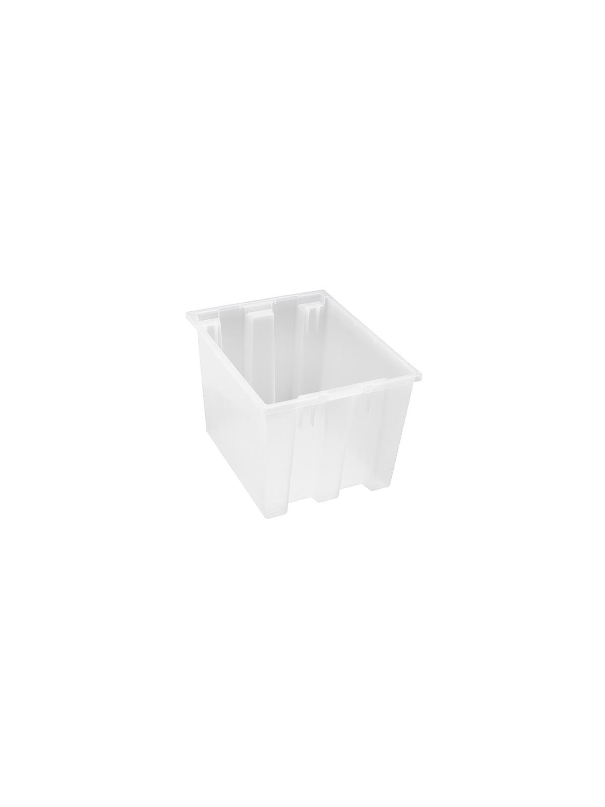 High density polypropylene, injection molded for uniform wall thickness and added strength. Lids snap tightly and securely for a safe fit. Quick 180° turn offers space-saving stacking and nesting. Stacks 6 high. Fits 48" x 40" pallets (6 SNT190, 4 SNT230 per level). Usable in temperatures from -10° to 250°F. Available in Gray, Blue, Red or Clear. Optional clear, see-thru Stack and Nest Label Holder (HSNH010) and optional Dolly (HDLY-3018) available. FOB Shipping Point.