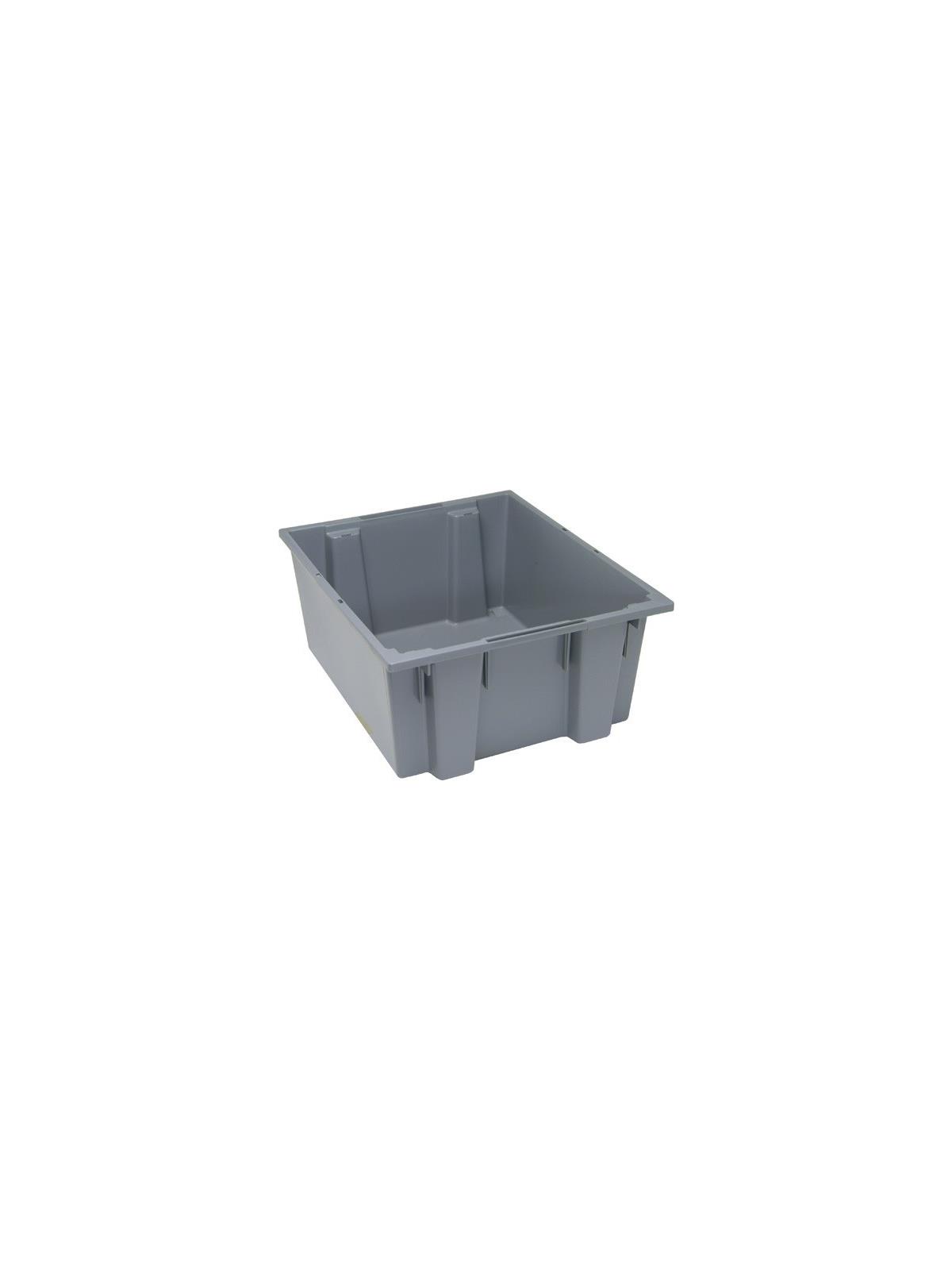 High density polypropylene, injection molded for uniform wall thickness and added strength. Lids snap tightly and securely for a safe fit. Quick 180° turn offers space-saving stacking and nesting. Stacks 6 high. Fits 48" x 40" pallets (6 SNT190, 4 SNT230 per level). Usable in temperatures from -10° to 250°F. Available in Gray, Blue, Red or Clear. Optional clear, see-thru Stack and Nest Label Holder (HSNH010) and optional Dolly (HDLY-3018) available. FOB Shipping Point.