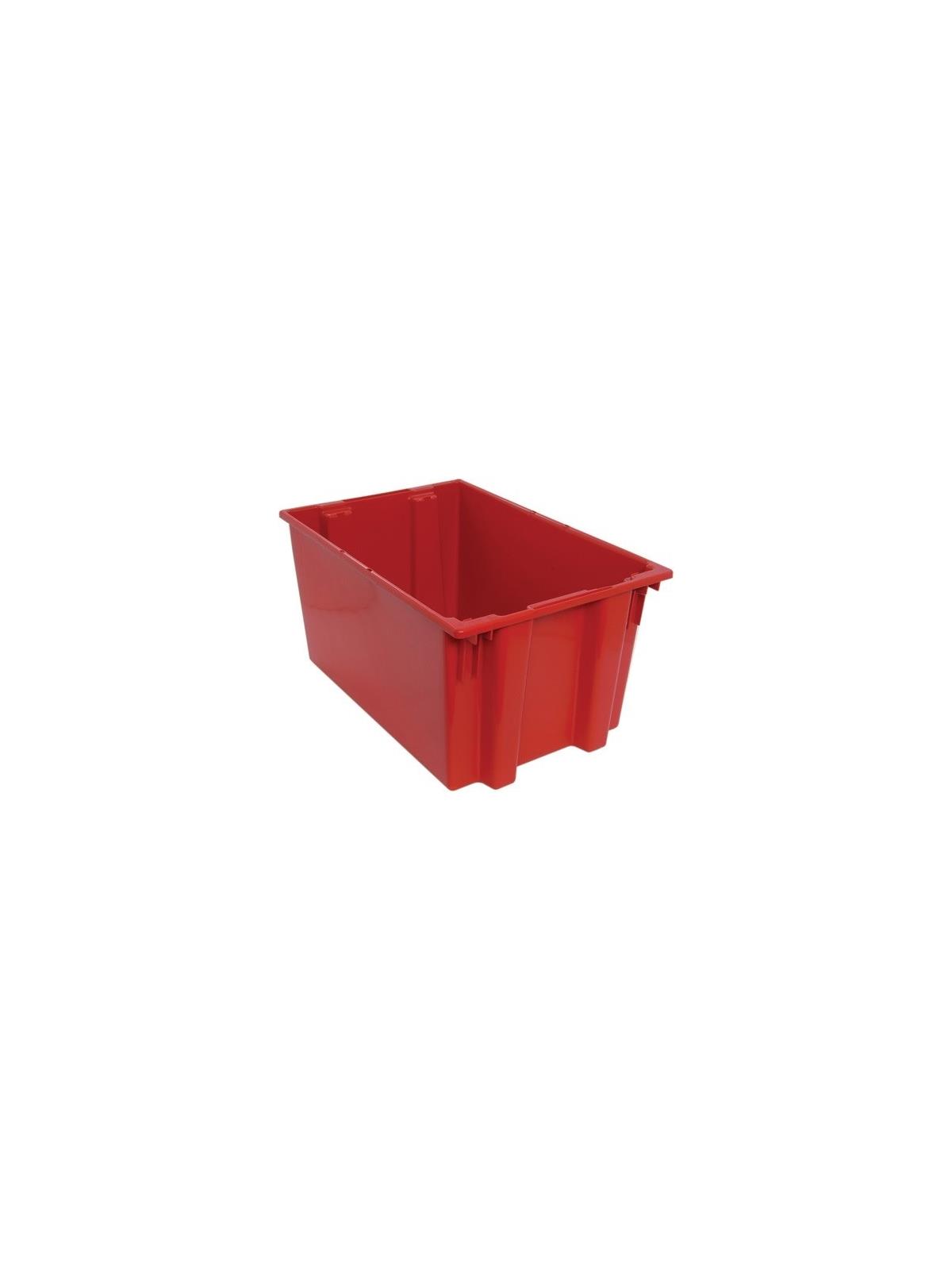 High density polypropylene, injection molded for uniform wall thickness and added strength. Lids snap tightly and securely for a safe fit. Quick 180° turn offers space-saving stacking and nesting. Stacks 6 high. Fits 48" x 40" pallets (6 SNT190, 4 SNT230 per level). Usable in temperatures from -10° to 250°F. Available in Gray, Blue, Red or Clear. Optional clear, see-thru Stack and Nest Label Holder (HSNH010) and optional Dolly (HDLY-3018) available. FOB Shipping Point.