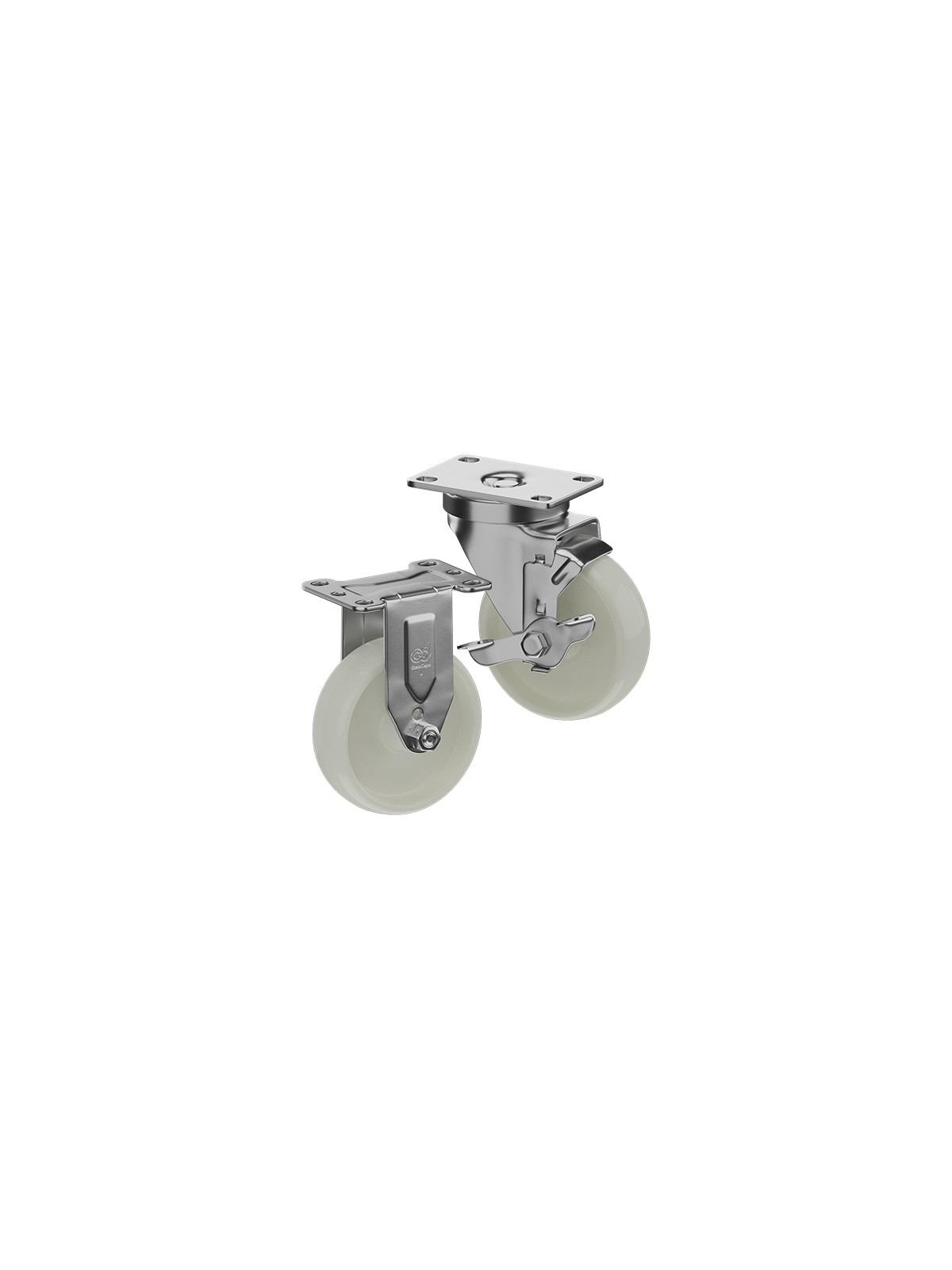 EnlargeSTAINLESS STEEL CASTERS - WHITE NYLON WHEELS