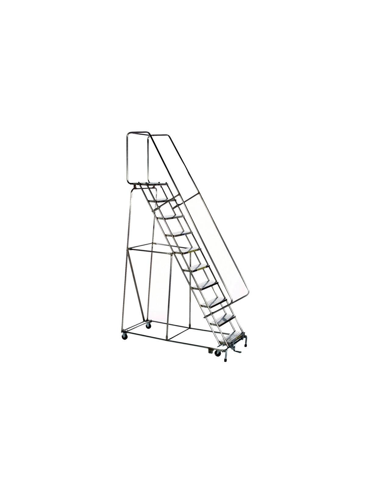 Built to OSHA and ANSI standards. 450 lb. capacity. All stainless steel ladders are manufactured with industrial grade welds - not recommended for clean rooms. Casters and springs are not stainless steel. Available in (P) Perforated Step or (G) Heavy Duty Serrated Grating tread types. FOB Shipping Point. Surcharge may apply.