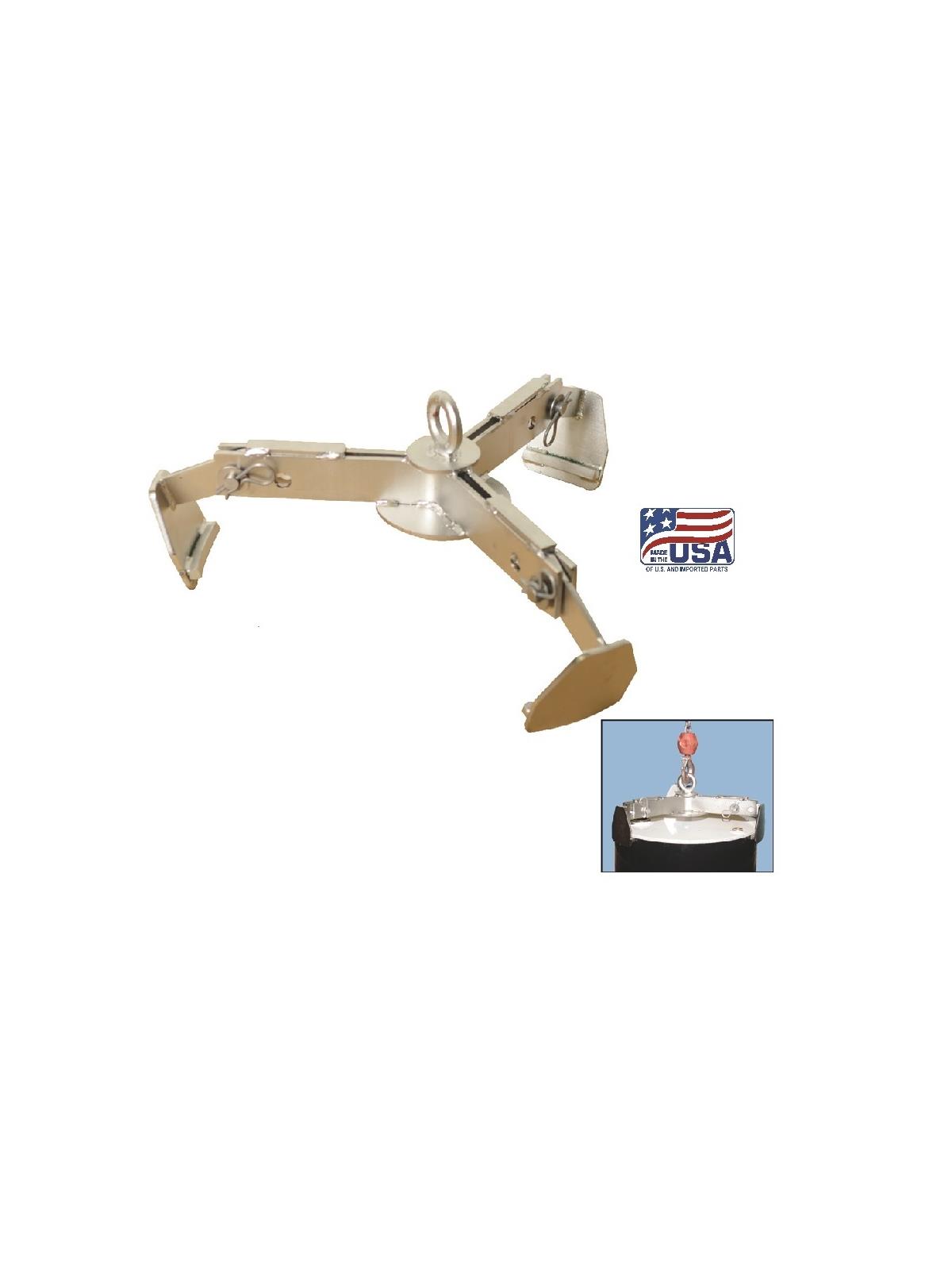 Unique design of this Stainless Steel Universal Drum Lifter allows for the loading or removal of drums into overpacks with the use of a hoist. Works on open and closed head standard steel or poly drums with at least a 3/16" chime. Lifting arms are adjustable to work with most 30 or 55 gallon drums. A three-point contact of the lifting arms prevent or minimizes deformation of the drum and provides more secure lifting. FOB Shipping Point.