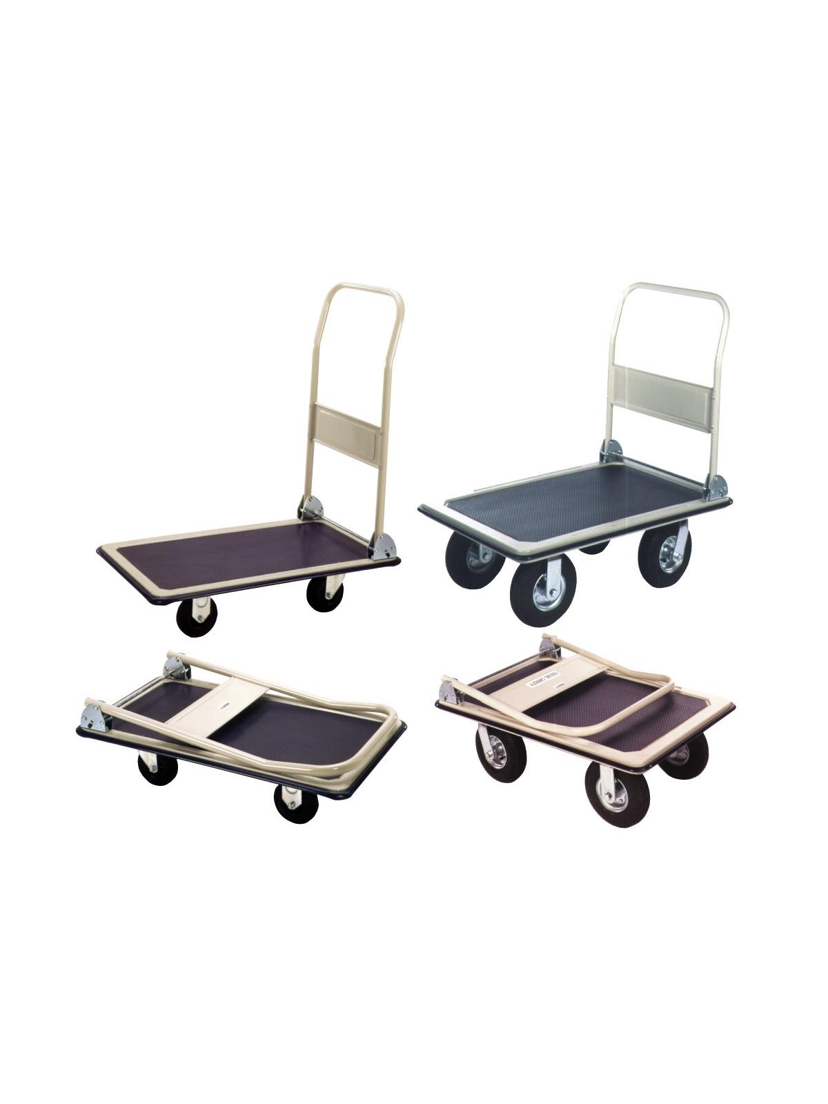 Fold down handle for easy, space saving storage. Protective vinyl perimeter bumpers won't scratch walls or furniture. Non-skid heavy vinyl deck surface. Enameled finish. FOB Shipping Point. Steel and aluminum surcharges may apply.