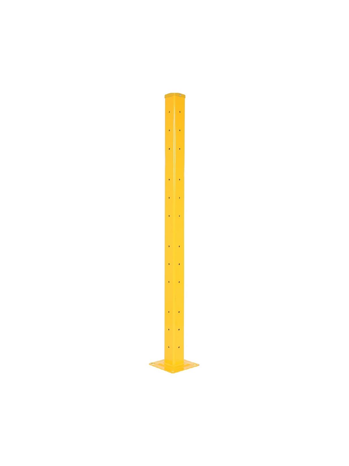 Create a modular system to protect equipment, inventory, and individuals from damage or injury. Corrugated rails are constructed from 1/8" thick material, made for high impact resistance indoors and out. Posts are constructed of 1/4" thick material with mounting holes on all four sides for use as corner or center posts. Posts measure 4" x 4" with a 10" square steel base plate that is 5/8" thick. Bolts and washers are provided with individual rail sections. Provide easy accessibility with our drop-in style rails. Slide rail sections into post saddles for simple assembly. Each drop-in style rail section includes two brackets. Bolt-on style rails are designed for permanent installation. Optional gate available for easy access in and out of work area. Galvanized material available. FOB Shipping Point.
