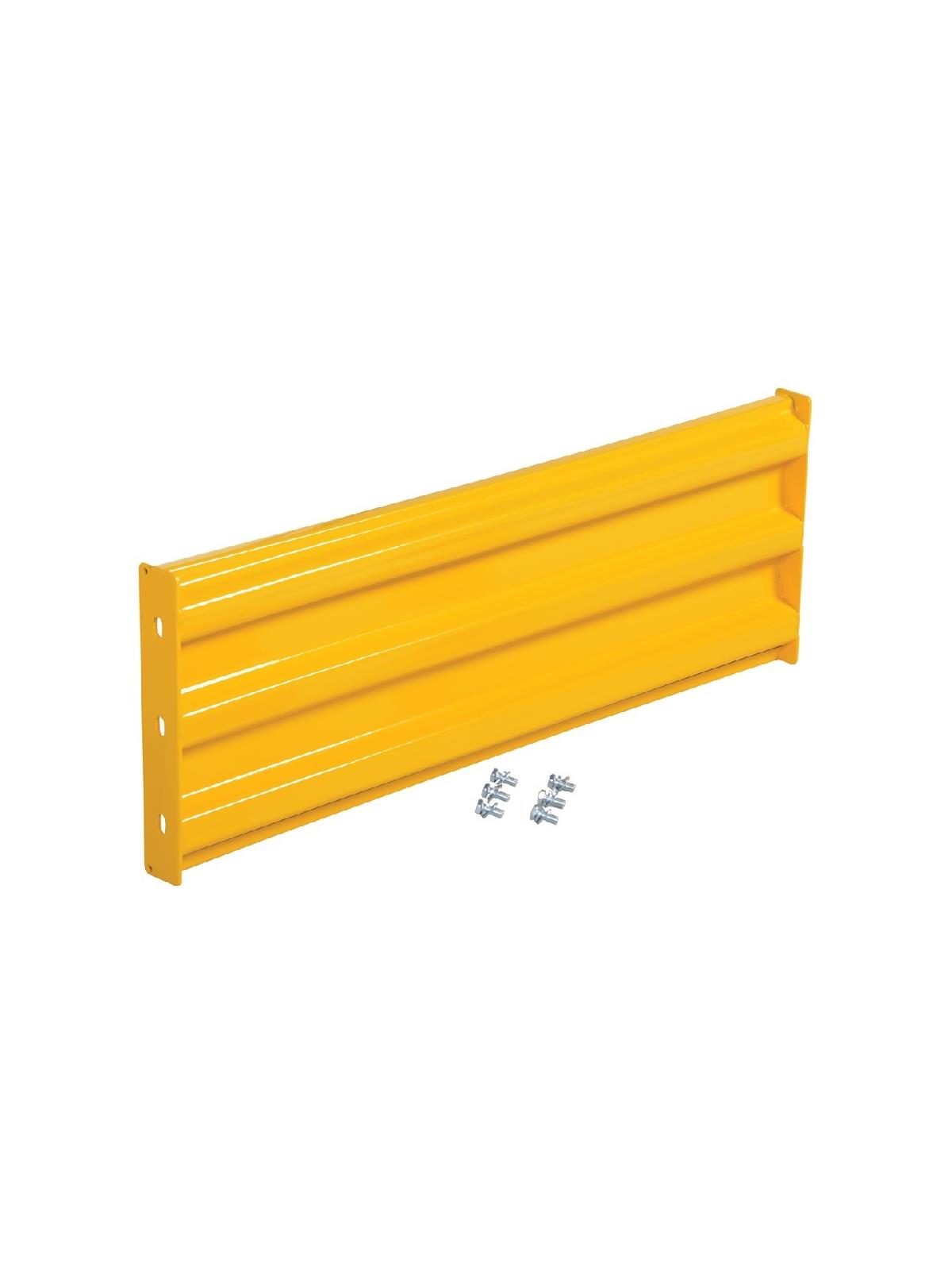 Create a modular system to protect equipment, inventory, and individuals from damage or injury. Corrugated rails are constructed from 1/8" thick material, made for high impact resistance indoors and out. Posts are constructed of 1/4" thick material with mounting holes on all four sides for use as corner or center posts. Posts measure 4" x 4" with a 10" square steel base plate that is 5/8" thick. Bolts and washers are provided with individual rail sections. Provide easy accessibility with our drop-in style rails. Slide rail sections into post saddles for simple assembly. Each drop-in style rail section includes two brackets. Bolt-on style rails are designed for permanent installation. Optional gate available for easy access in and out of work area. Galvanized material available. FOB Shipping Point.