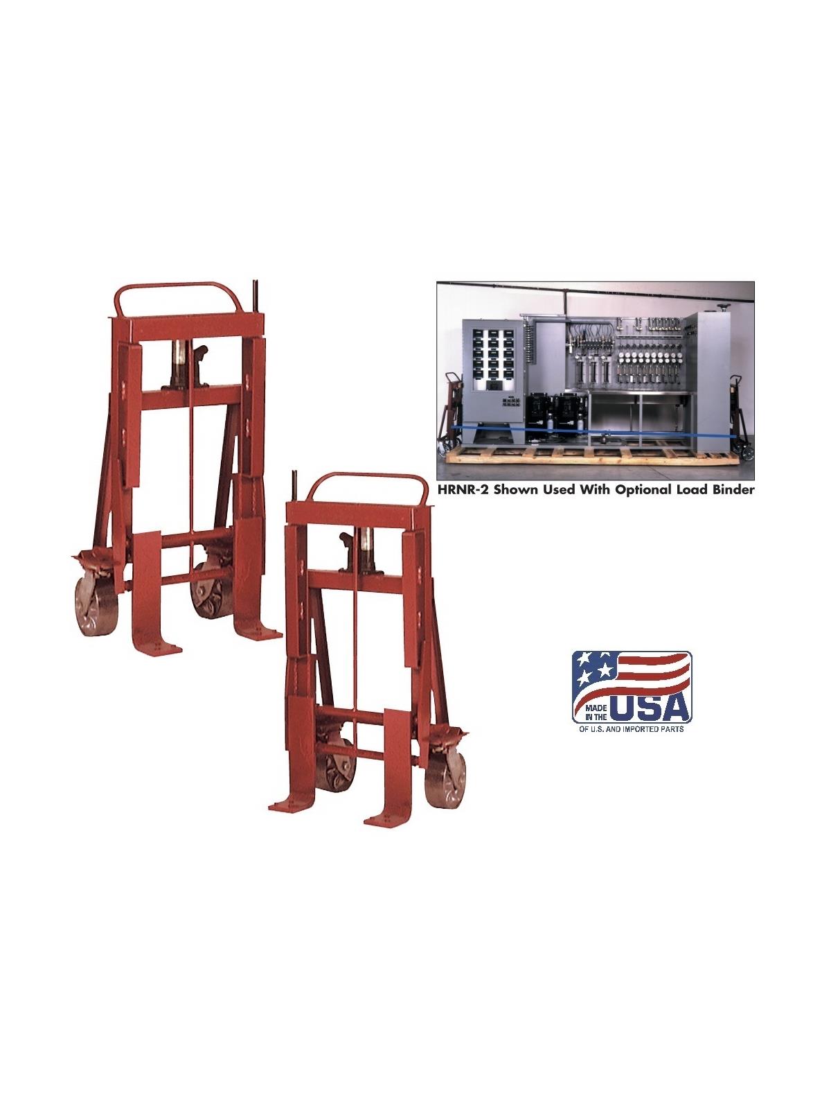 Super Heavy-Duty Cargo Lifts are sold in pairs to facilitate lifting bulky loads from each end utilizing a heavy-duty hand operated hydraulic jack. Swivel casters allow movement in any direction. All models supplied with hooks for attaching recommended optional HLB-1 or HLB-2 load binders. Sold in pairs. FOB Shipping Point.
