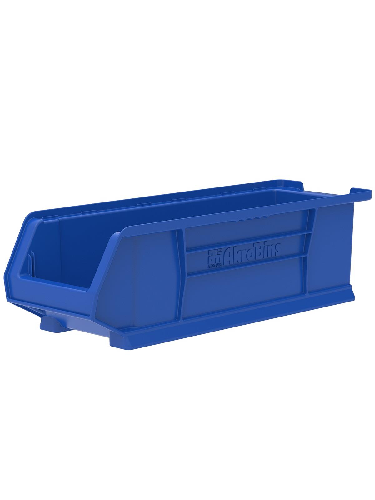 • Heavy-duty bins securely stack atop each other -- or sit on shelving.