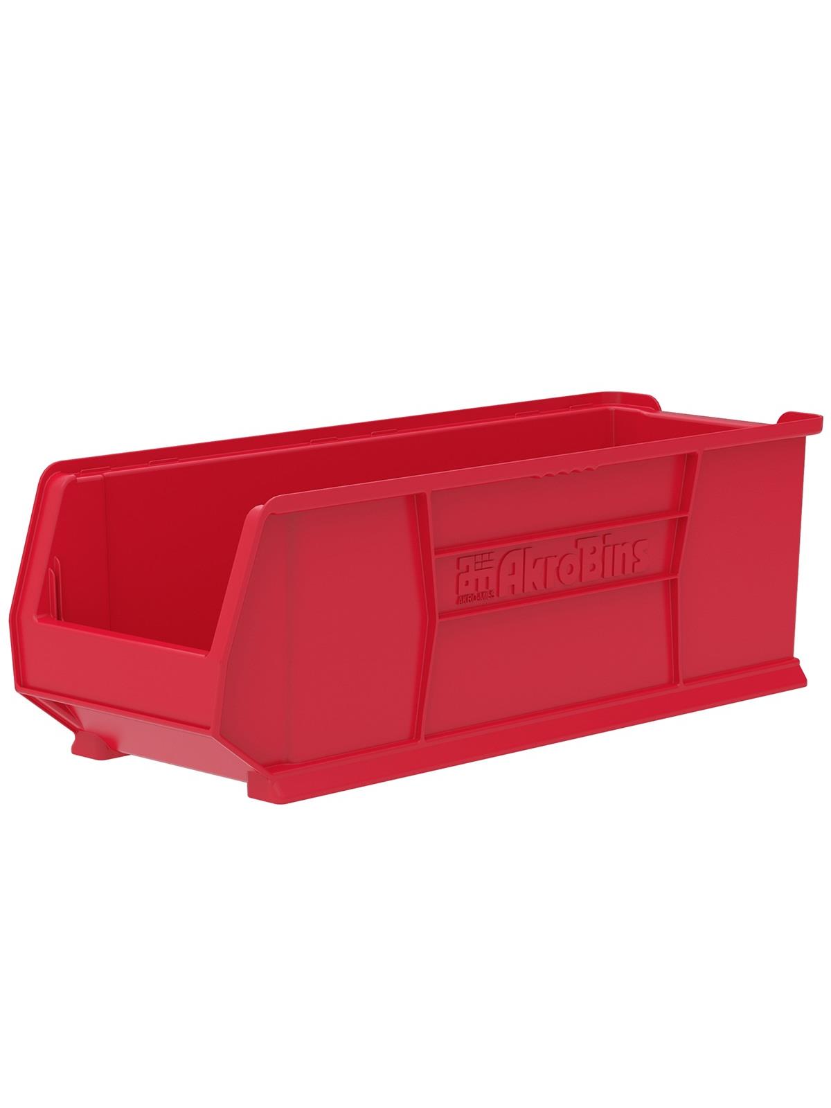 • Heavy-duty bins securely stack atop each other -- or sit on shelving.