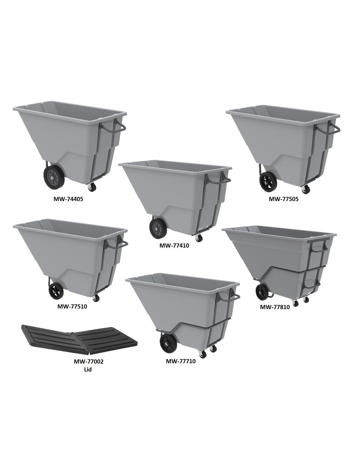 Features ergonomic design and are easy to maneuver. Wide mouth and low profile for easy loading. Easy-pull, load balanced design provides stability. Front caster wheel has a roller bearing for an extra measure of stability when pushing, pulling or turning. Large, comfortable grab handle is arc welded and reinforced for optimum durability. 12" dia. wheels. Full, wrap-around tubular frame is constructed of 1" powder-coated steel for enhanced appearance and rust protection. Available in Gray only. FOB Shipping Point.
