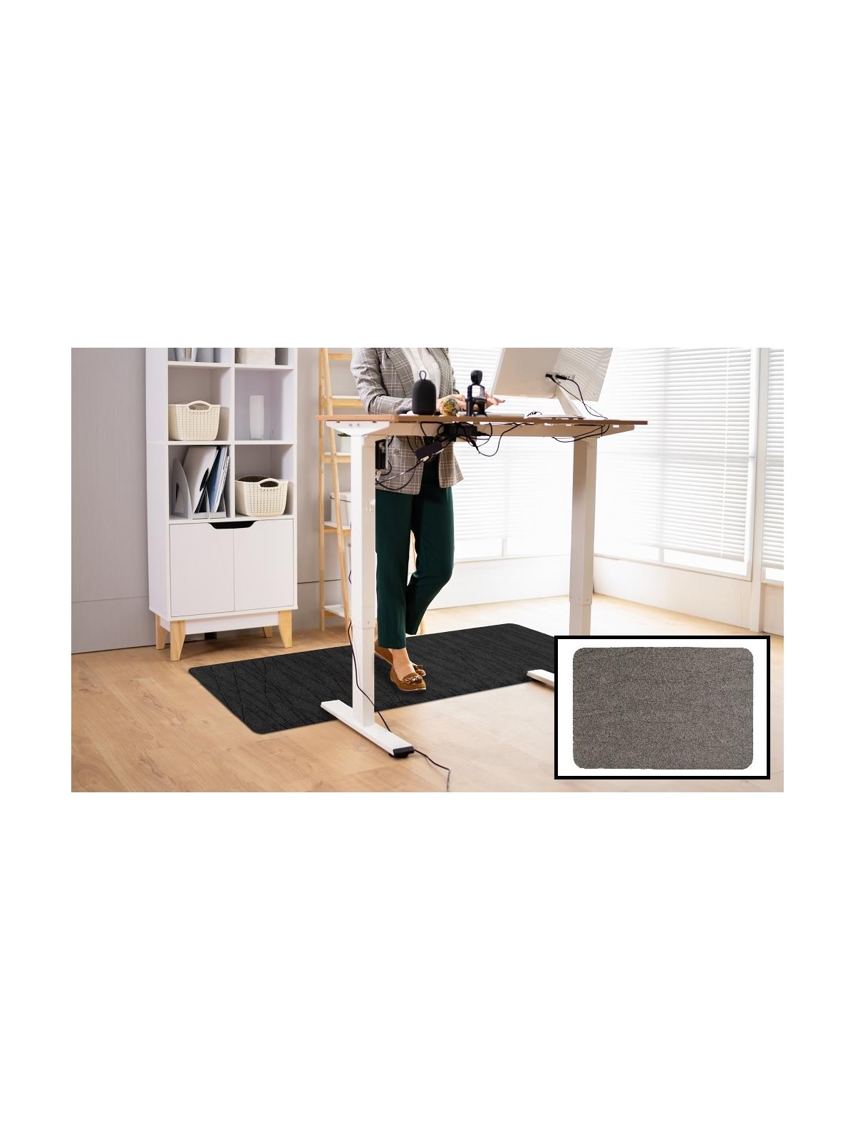 TuffComfort standing desk mats provide workers with a comfortable, healthy alternative to sitting throughout their workday, minimizing the negative effects on the body associated with sitting for long periods of time. FOB Shipping Point. • Comfortable - Polyurethane cushion runs edge-to-edge and provides excellent anti-fatigue properties to alleviate pain from extended standing; overall mat thickness is 3/4". • Safe - Beveled edges provide a seamless transition from floor to mat; edges will not crack or curl. • Stain-Resistant - PET fabric is naturally stain resistant, making it easy to remove stains from the mat. • Eco-Friendly - PET fabric surface is made from at least 90% recycled content reclaimed from plastic.