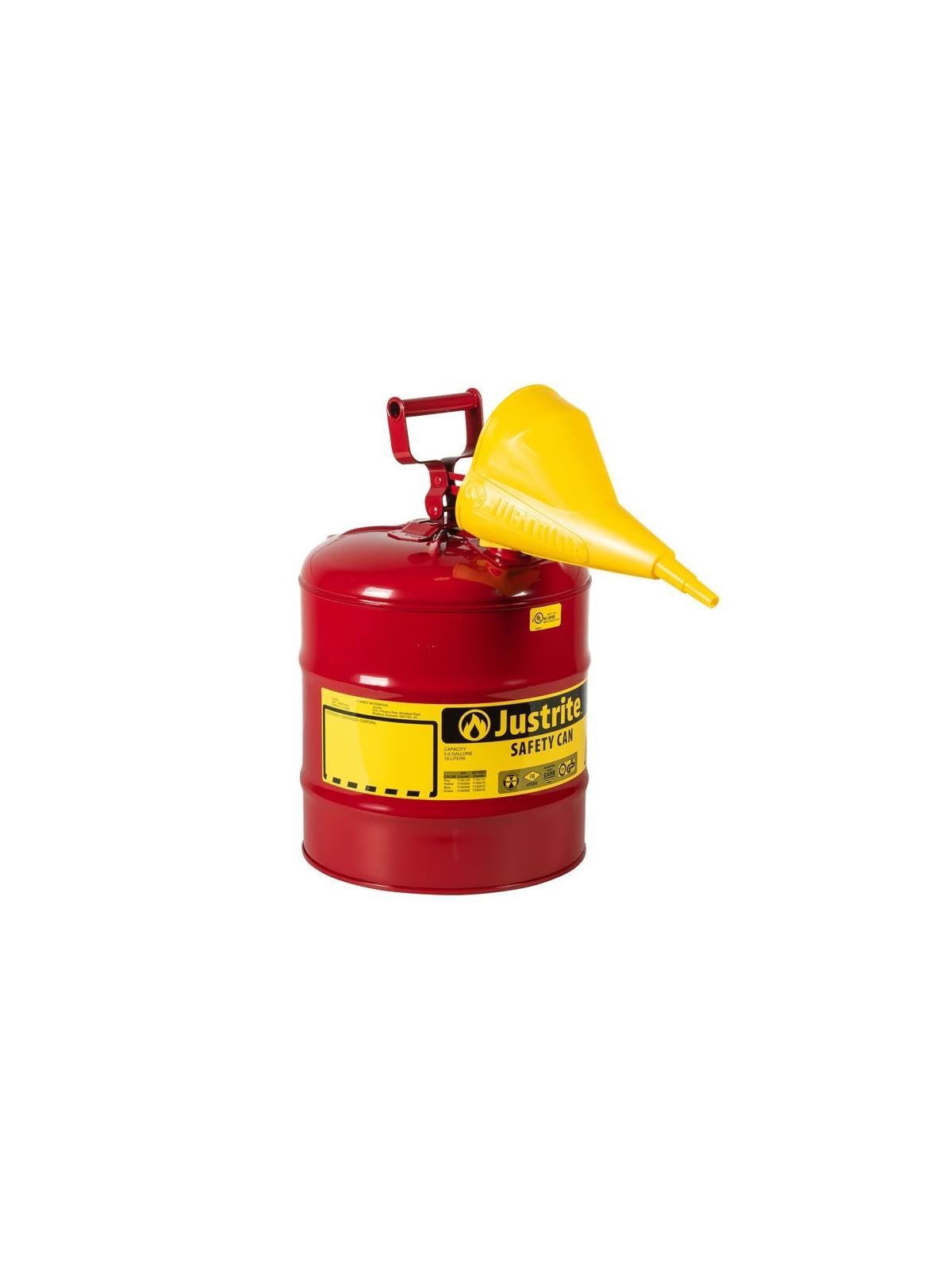 Made of 24 ga. steel for rough daily use. Complete with tested and approved closure and pressure relief mechanism with powder paint finish. Counterbalance designed for easy pouring. Large label ID Zone reduces misuse. FM approved and UL listed. Meets OSHA and NFPA requirements. FOB Shipping Point.