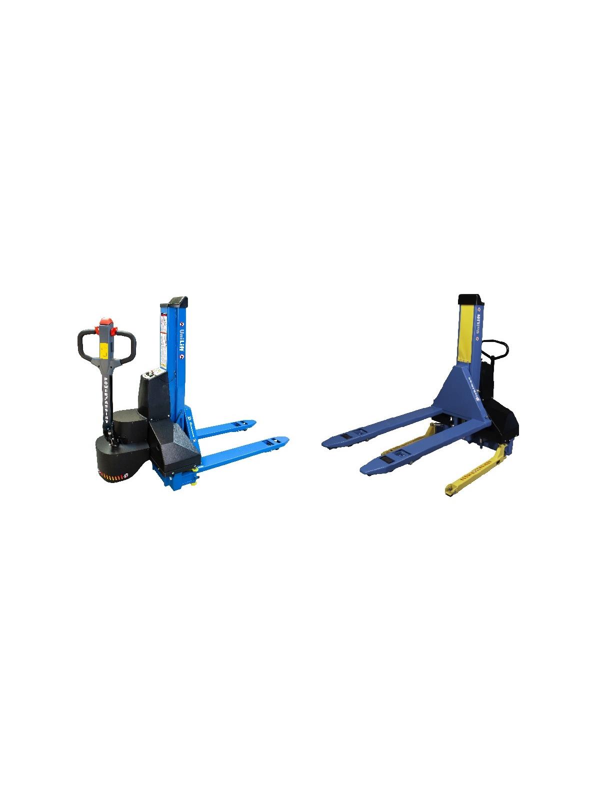 The UniLift™ combines the functionality of a pallet lifter, transporter, and work positioner, allowing smooth handling and precise lifting of up to 2,000 lbs. The UniLift™ features a user-friendly electronic control panel with "Raise" and "Lower" buttons, a dual-function key/battery disconnect switch, outrigger position LEDs, and charger status and battery condition indicators. Equipped with an onboard automatic battery charger and durable polyurethane wheels for optimal maneuverability, the UniLift™ is now available in a Power Assist model driven by a 24VDC battery system for enhanced ease and efficiency. FOB Shipping Point. Surcharges may apply.