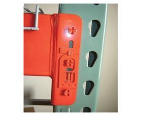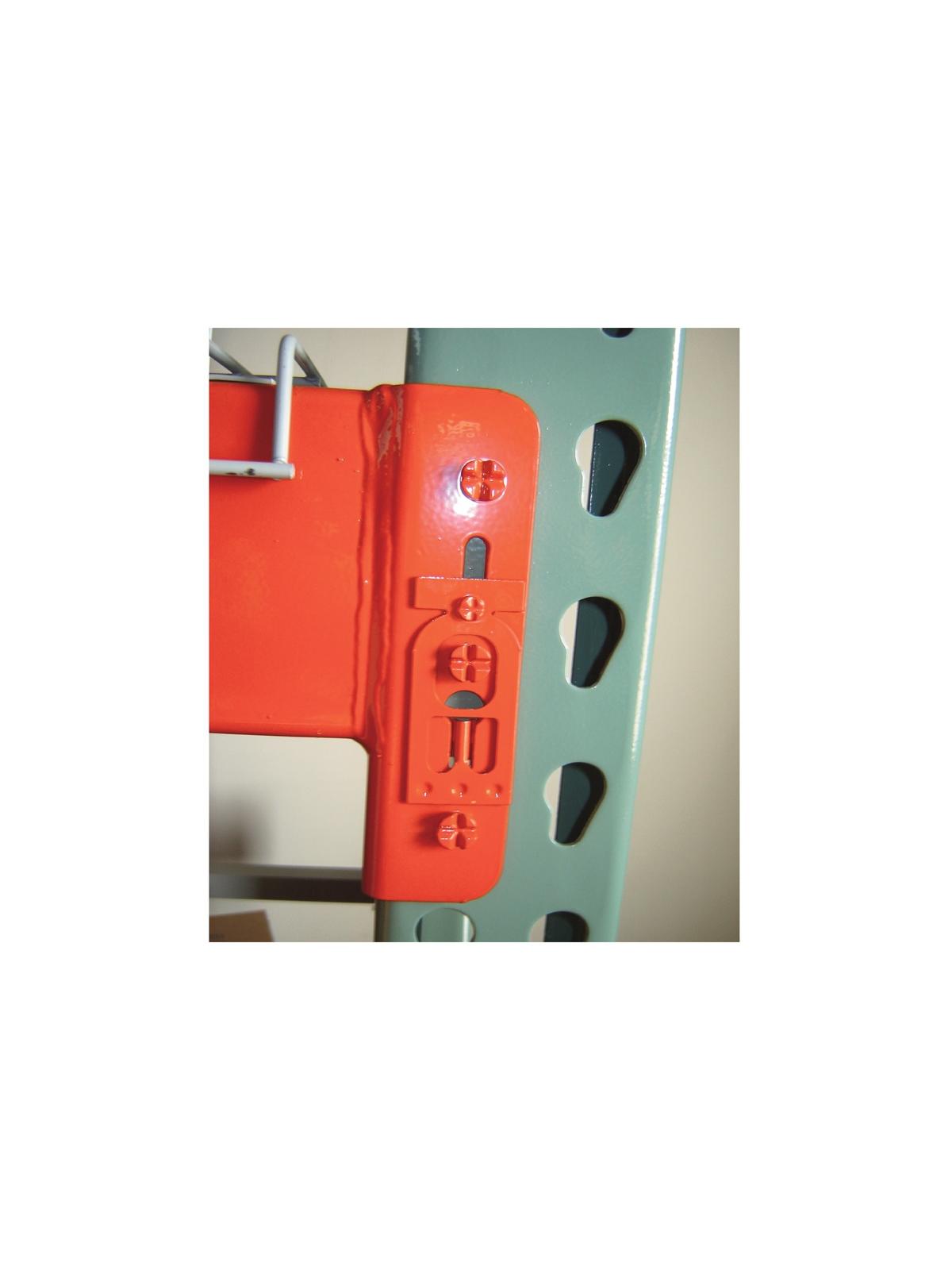 Beams feature at least three rivet studs for maximum holding power. A no tools required spring loaded REMOVABLE safety clip is included on every beam endplate. Beam re-location is painless in the event your slotting requirements change. Beams are adjustable vertically in 2" increments from 8" off the floor to any height on the upright. Unirak Beams are hi-gloss powder coat Orange finish. Other sizes and colors are available -- call for details. FOB Shipping Point.