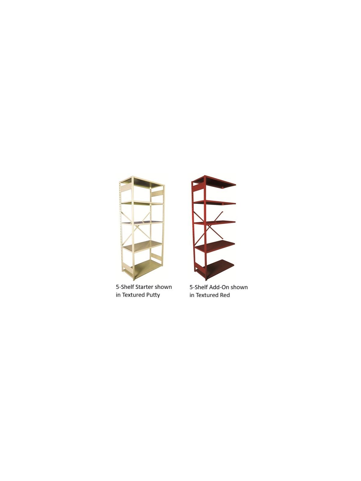 At the heart of Equipto's engineered space solutions is V-Grip™, an industrial shelving system design that is unmatched in structural integrity and provides the industry's broadest selection of accessory components to meet virtually any application. V-Grip™ upright posts have an exclusive triangular design that maximizes load-bearing capability while providing a smooth front surface without unsightly holes or hardware. 9 standard color choices. FOB Shipping Point. Shelves are 1.25" thick and adjustable in 1.5" increments. Add 1-5/8" to nominal shelving row width to determine total row width. Surcharge may apply.