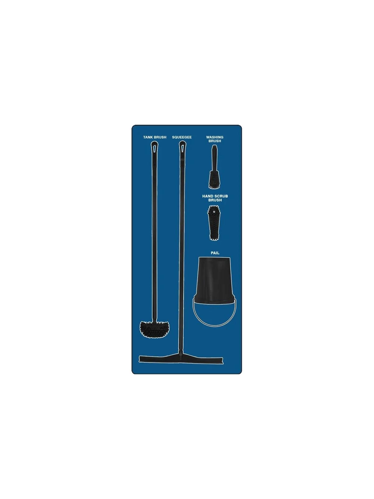 Designed for wet environments, color code your cleaning tools for distinct purposes. Keep general maintenance and cleaning tools organized, neat and always ready for use. Minimize downtime searching for tools by keeping them in one centralized location. Available in a variety of materials to match your environment: Ultra Aluma-Lite™, and Accu-Shield™. 4 color options available with your choice of either black or white tool shadows. Ideal for non-food contact & general maintenance. Promotes tool accessibility at point of use benefits. Maximizes efficiency, organization and accessibility. Minimizes wasted travel time to supply rooms/closets. Provides easy and fast janitorial solutions without added physical stress. Shadow Board Dimensions: 68"H x 30"W. Features 1/2" rounded corners and 3/8" mounting holes. Boards include mounting hardware for tools. Some assembly required: instruction and assembly hardware included. Due to size and/or weight, this product may need to ship LTL. FOB Shipping Point.