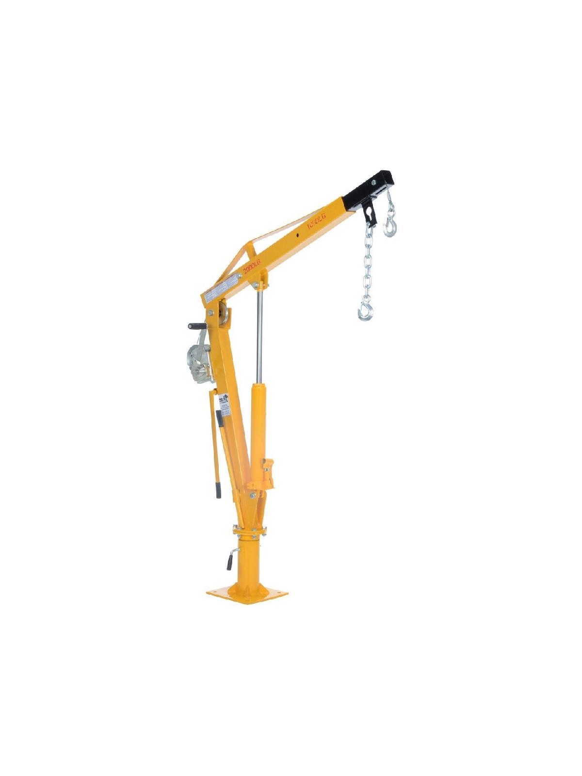 Includes telescopic boom design with manual hydraulic hand pump to pivot boom up and down. Manual cable winch to lift and lower loads. Unit comes with one fixed hook, one chain slot lock, and one cable hook with latch. DC powered option available. FOB Shipping Point.