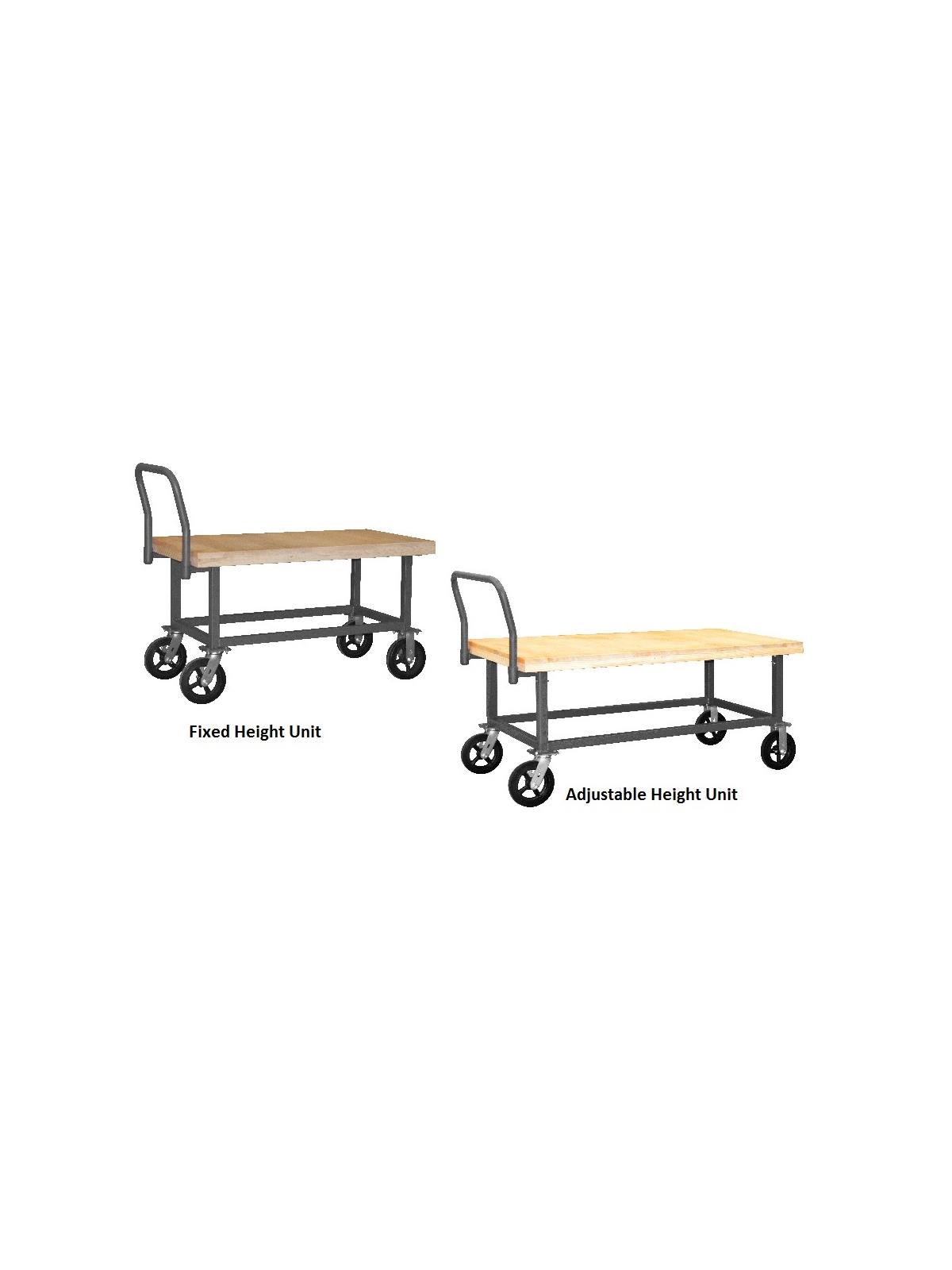 All welded heavy duty steel trucks feature heat treated hardwood surfaces with a removable, tubular offset handle that allows for easy mobility. 8 x 2" mold-on rubber casters (2 swivel and 2 rigid). Ships fully assembled and ready to use. Durable, textured gray powder coat finish. FOB Shipping Point.