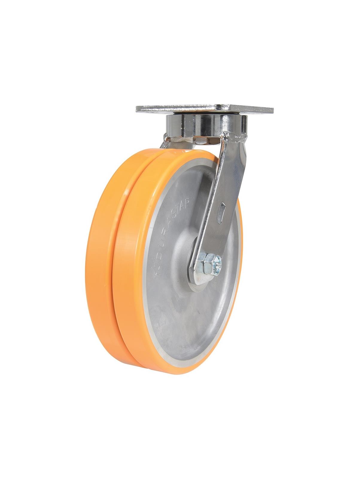 Arguably the most ergonomic caster in the market. Made of premium grade polyurethane. The independent dual wheels allow for sharp turns with the smallest radius. This is coupled with a state-of-the-art double precision raceway that provides one of the tightest, smoothest swivels in the industry. FOB Shipping Point.