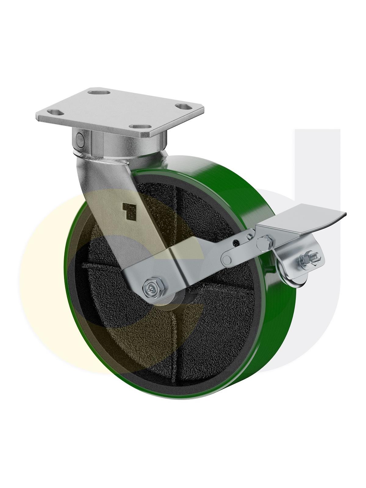 Description 8 x 2" Zinc-Plated, Kingpinless Swivel Caster w/ Face Contact Brake