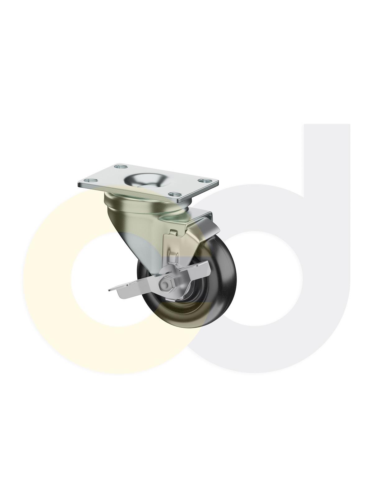 Description 3-1/2 x 1-1/4" Zinc-Plated, Swivel Caster w/ Side Tread Lock Brake