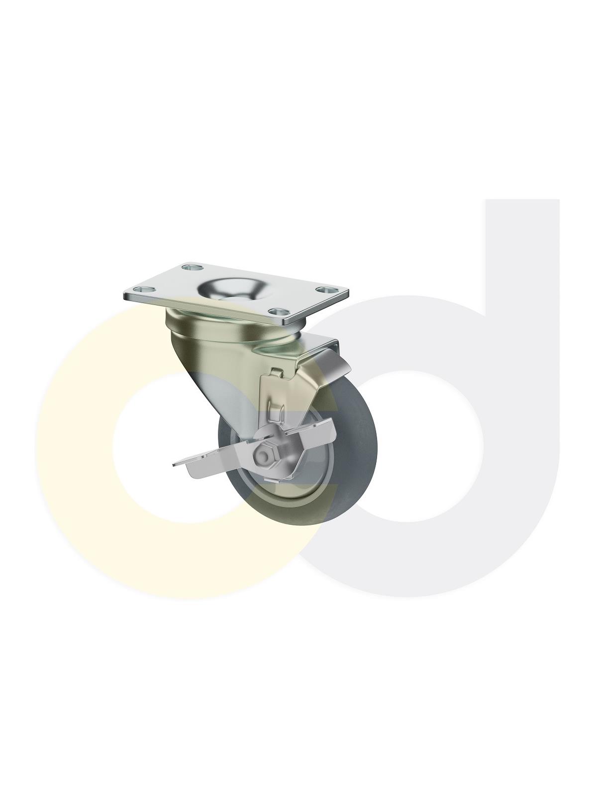 Description 3-1/2 x 1-1/4" Zinc-Plated, Swivel Caster w/ Side Tread Lock Brake