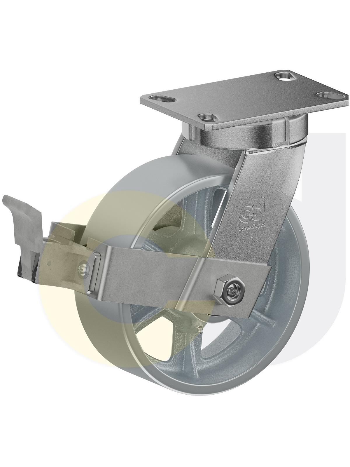Description 8 x 3" Zinc-Plated, Kingpinless Swivel Caster w/ Face Contact Brake
