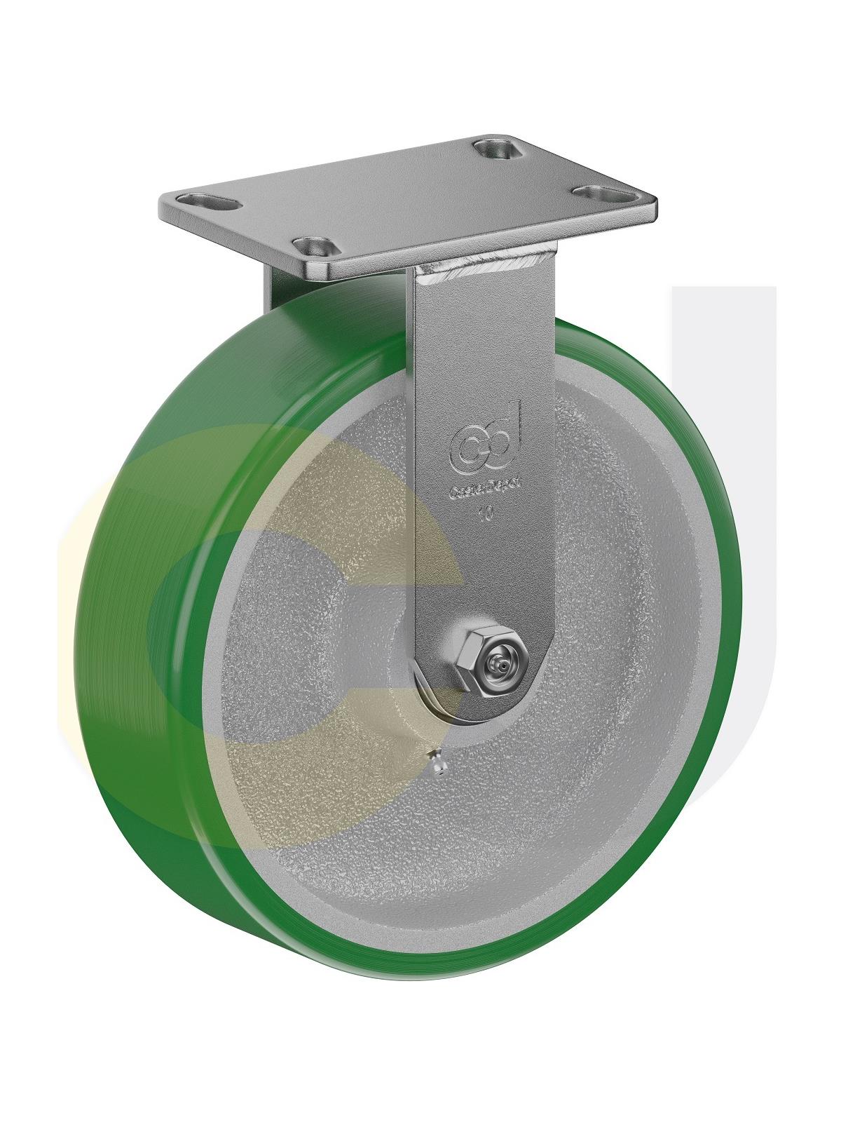 ZINC PLATED KINGPINLESS CASTER- POLY ON CAST IRON WHEELS