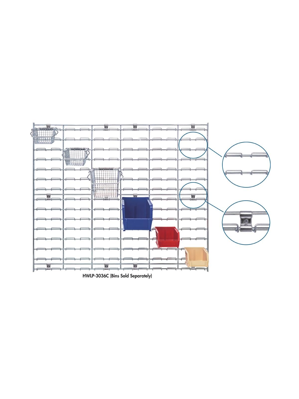 Quantum's new chrome wire louvered panels offer a perfect mounting solution for all plastic hanging and new wire mesh hanging bins. Unlike a standard louvered panel where there can be the occasional concern of dust or dirt accumulation, Quantum's exclusive offering of wire panels completely resists any buildup of dust or dirt. Direct mounting clips are included and enable fastening to any surface - wall, wood, concrete, or drywall. Offset mounting clips HWLP-OSC (see Related Items tab) are sold separately if you want the wire panel mounted offset and away from a wall surface for easier cleaning behind the panel. FOB Shipping Point.